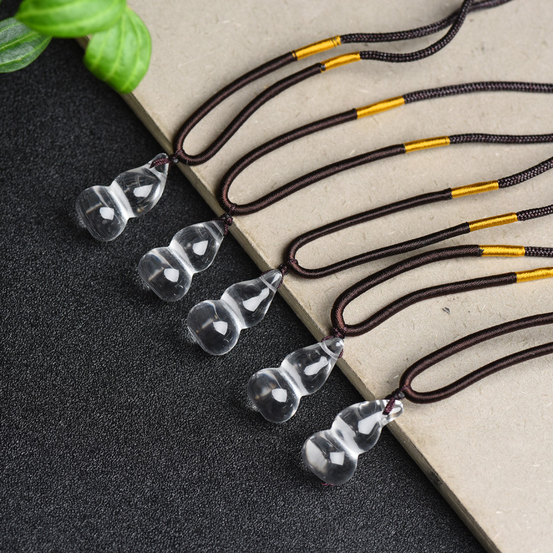 天然の白い水晶のヒョウタンのペンダントの男女の水晶のネックレスのセーターのチェーンの装飾品は石の誕生日のプレゼントを並べます。