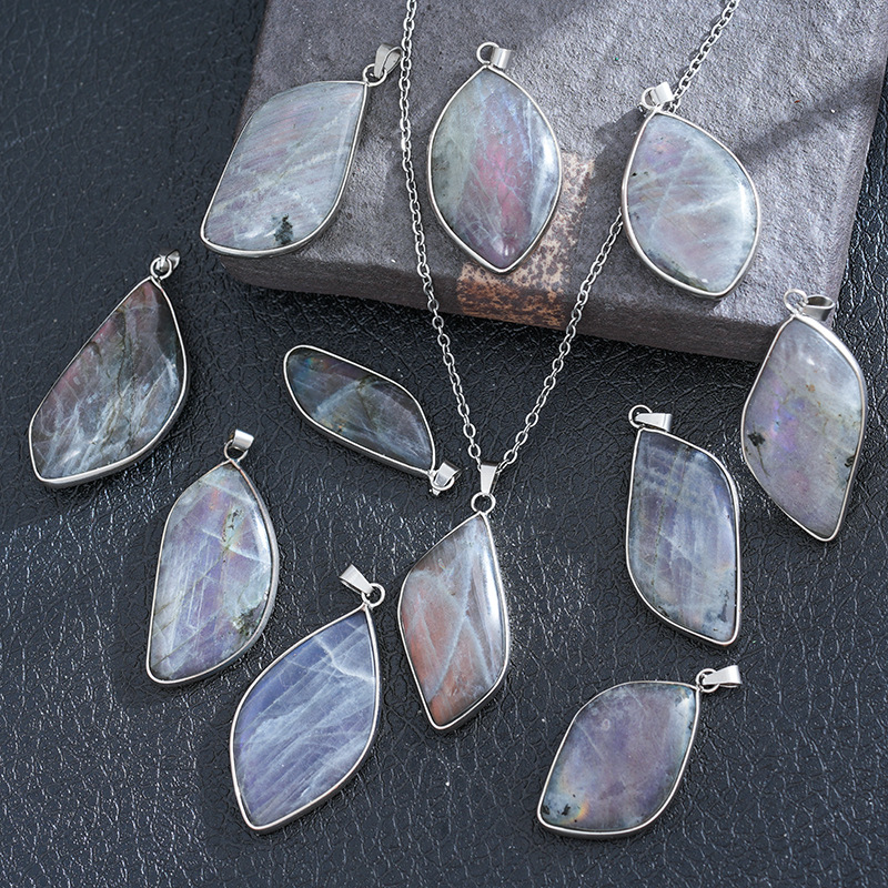 アマゾン随形ペンダント長石月光石葉ブルーレイネックレスアクセサリーペンダントクロスボーダー卸売り