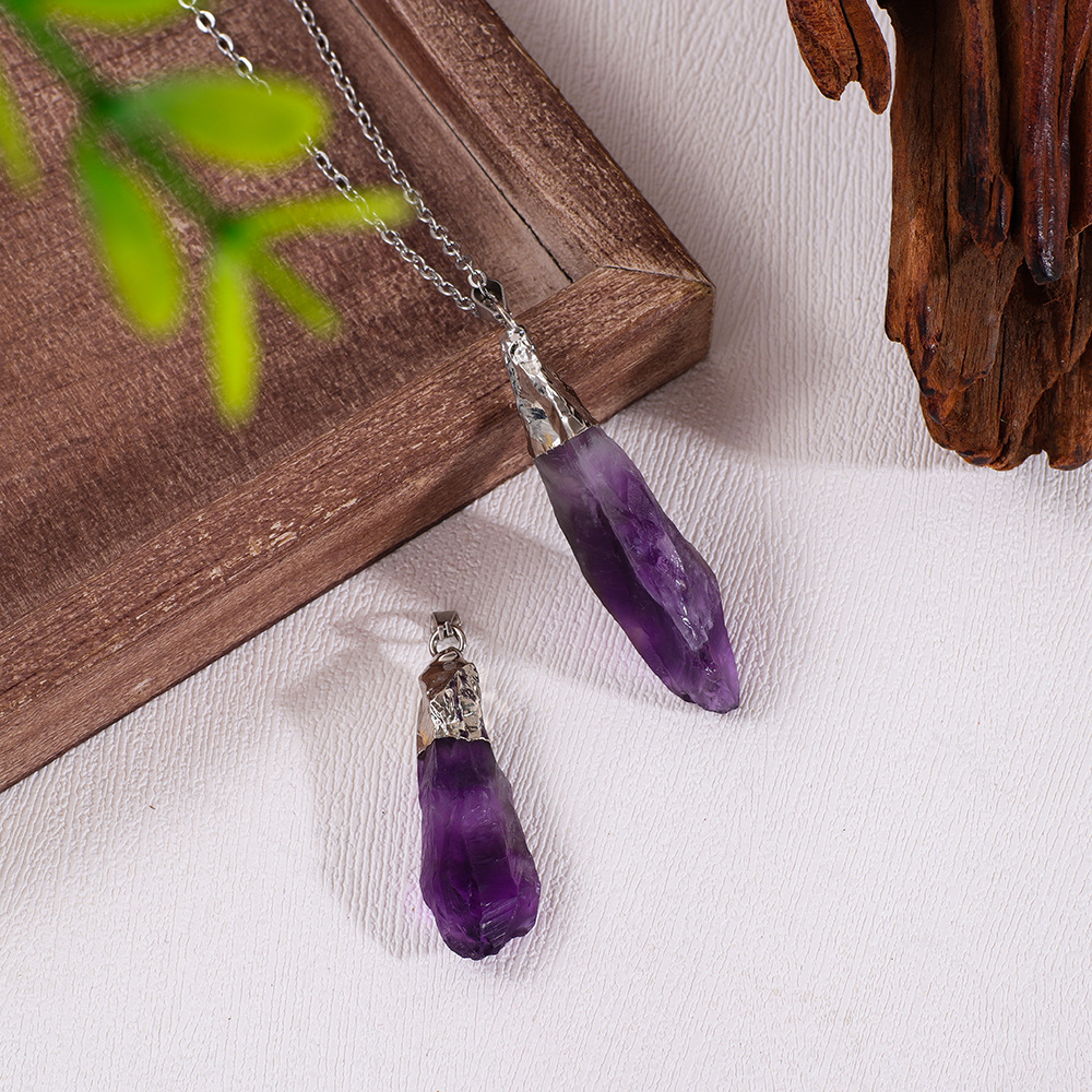 国境を越えた天然紫水晶ペンダント欧米の不規則な紫晶歯ネックレス水晶原石ペンダントアクセサリー