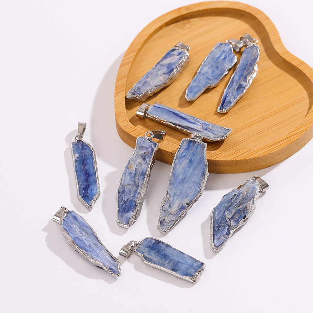 長条藍水晶ペンダント天然水晶原石ネックレスdiyアクセサリーアクセサリー不規則藍晶条ペンダント