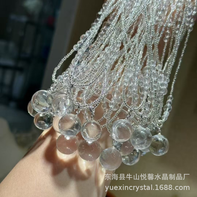 天然紫水晶ボールペンダント粉晶海藍宝原石円球網兜ネックレス男女モデル創意アクセサリー