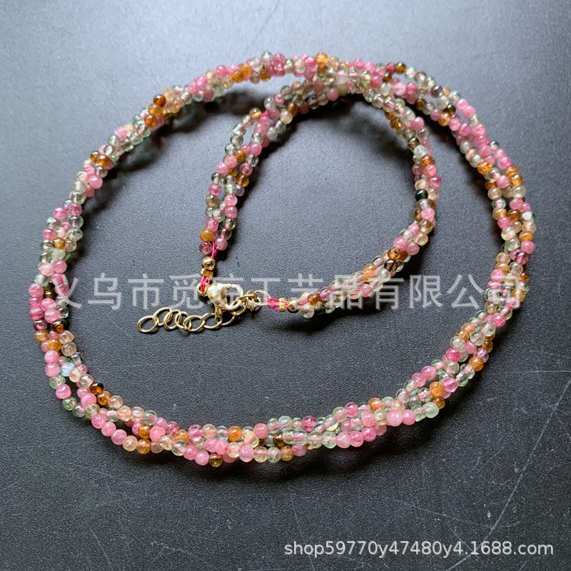 小珠三股巻線鎖骨首鎖天然色碧璽酒紅ガーネット玉ネックレスプレゼント