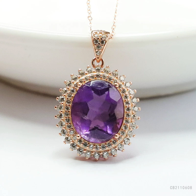 钰s925銀はめ込み天然紫水晶ペンダントブラジル彩宝宝飾品工場直播代発cb2 110608