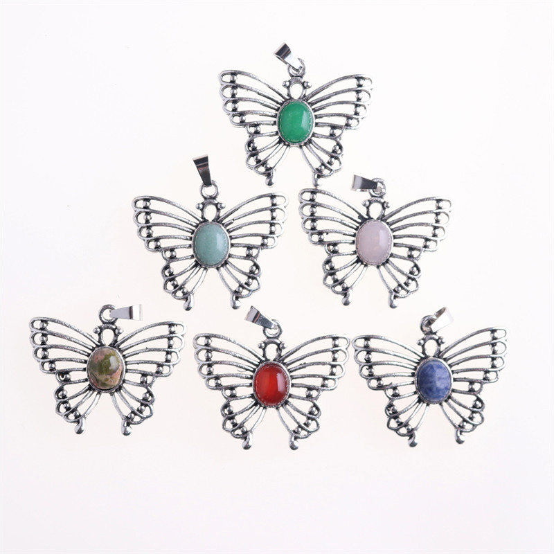 外国貿易クロスボーダーアクセサリー卸売水晶瑪瑙天然石個性ファッション蝶ペンダントマレー玉ネックレスペンダント
