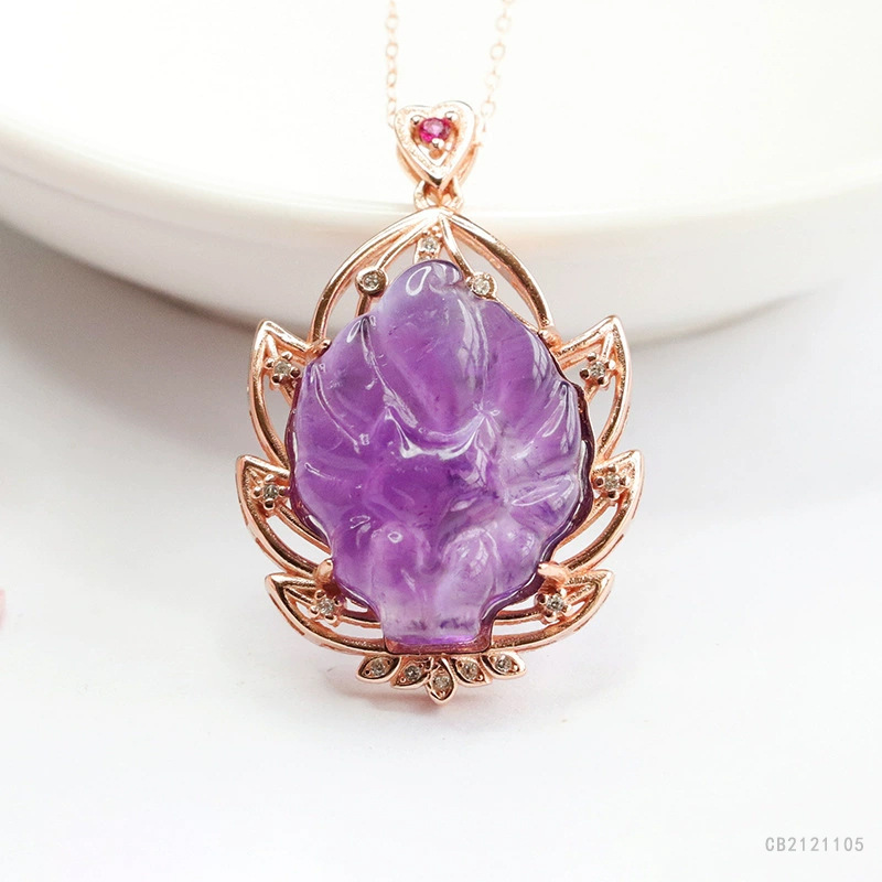 钰s 925銀は天然紫水晶狐ペンダント九尾狐ネックレス女生中継代発cb2121105