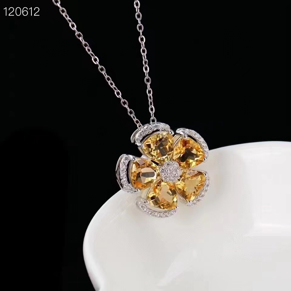 925銀天然黄水晶ペンダントネックレス花形ペンダント女性アクセサリー火彩新潮メーカー卸売り
