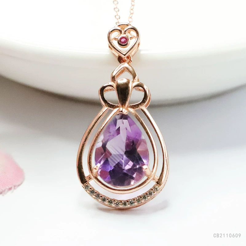 钰s925銀はめ込み天然紫水晶ペンダント水滴ブラジル彩宝工場直播代発cb2 110609