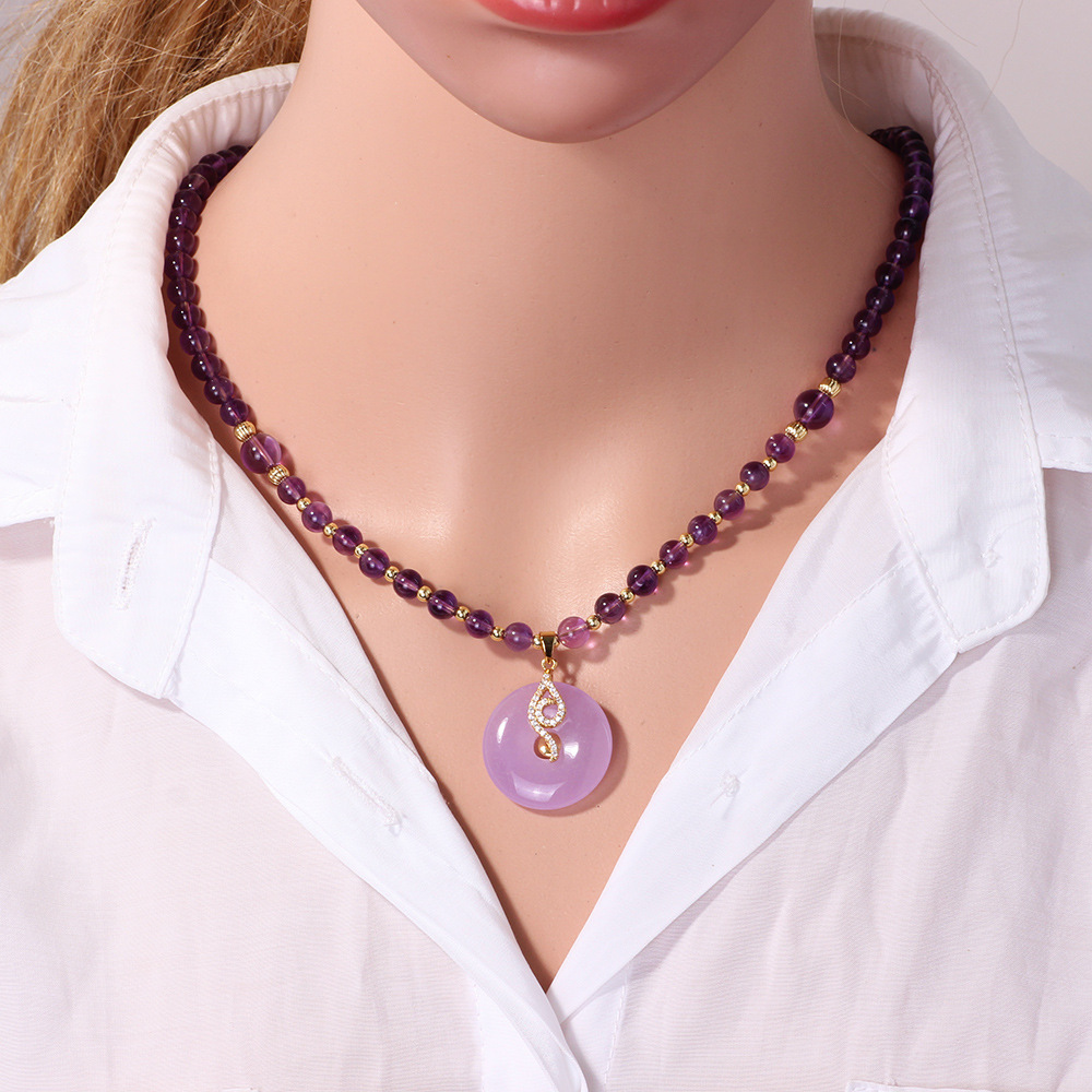 天然紫水晶ビーズネックレス女性古典気質玉髄平安ボタンペンダント直播爆金プレゼント