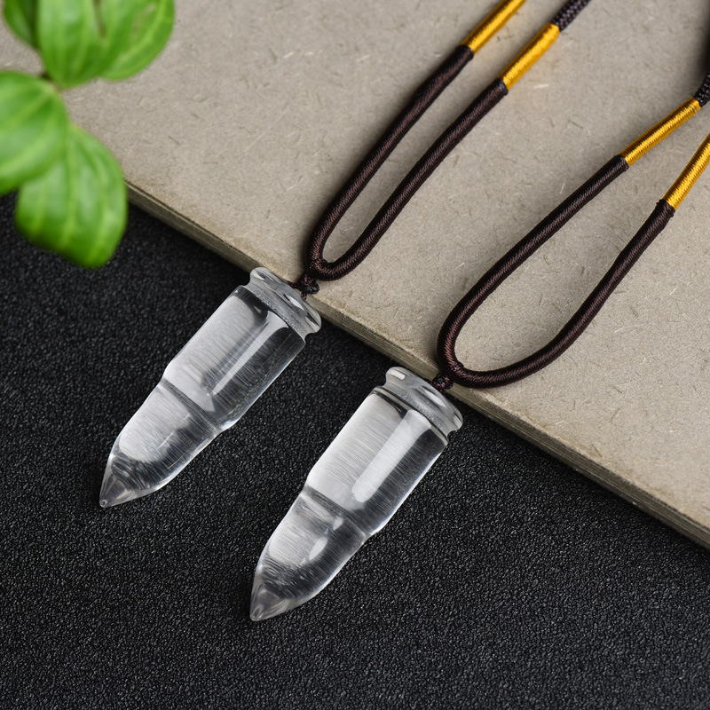 天然白水晶弾丸ペンダント男女水晶ネックレスセーターチェーンアクセサリー石誕生日プレゼント
