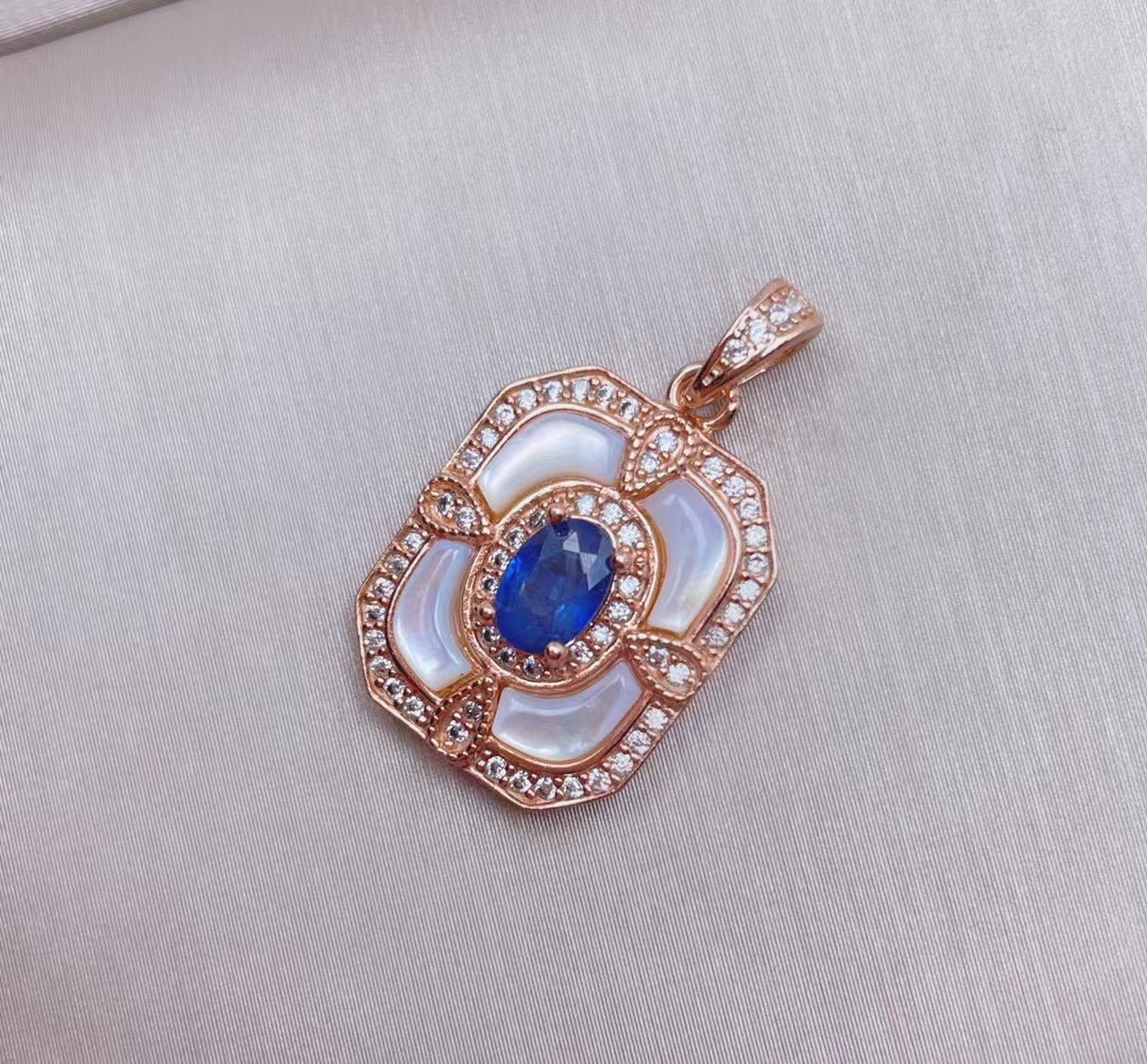 天然ロイヤルサファイア貝母ペンダント女性s925銀バラ金ジュエリーデザイン軽贅沢ネックレスins卸売り
