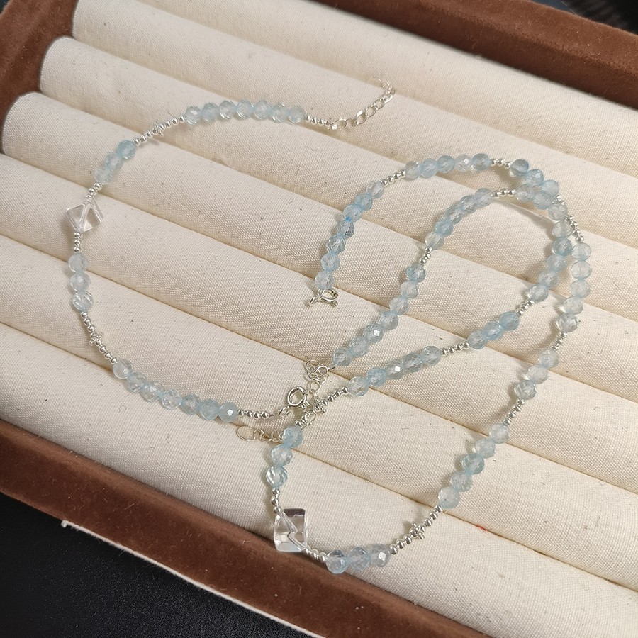 S925銀天然トパーズ石砕銀白水晶ネックレスブレスレット夏清新小衆百合INS女