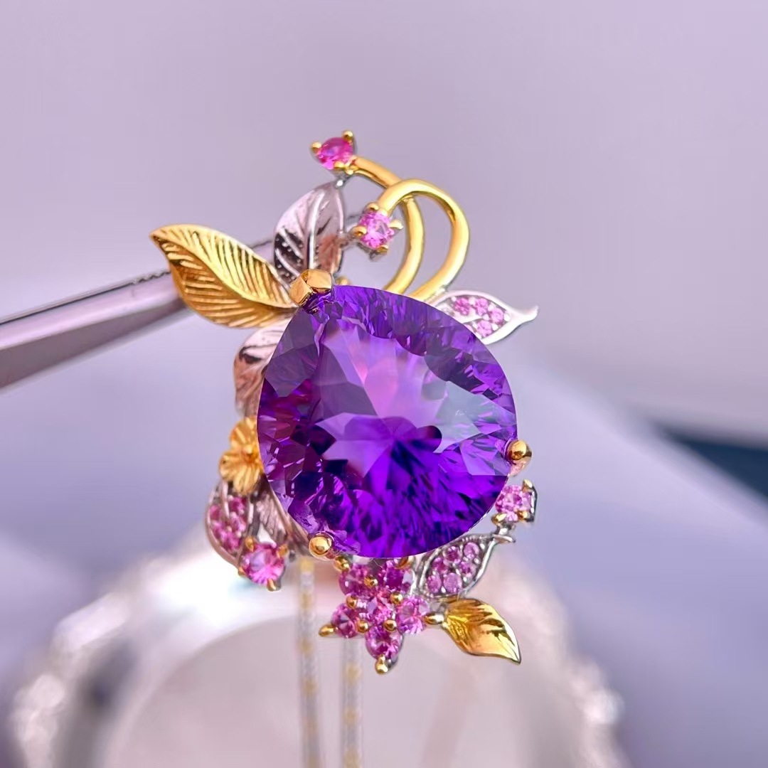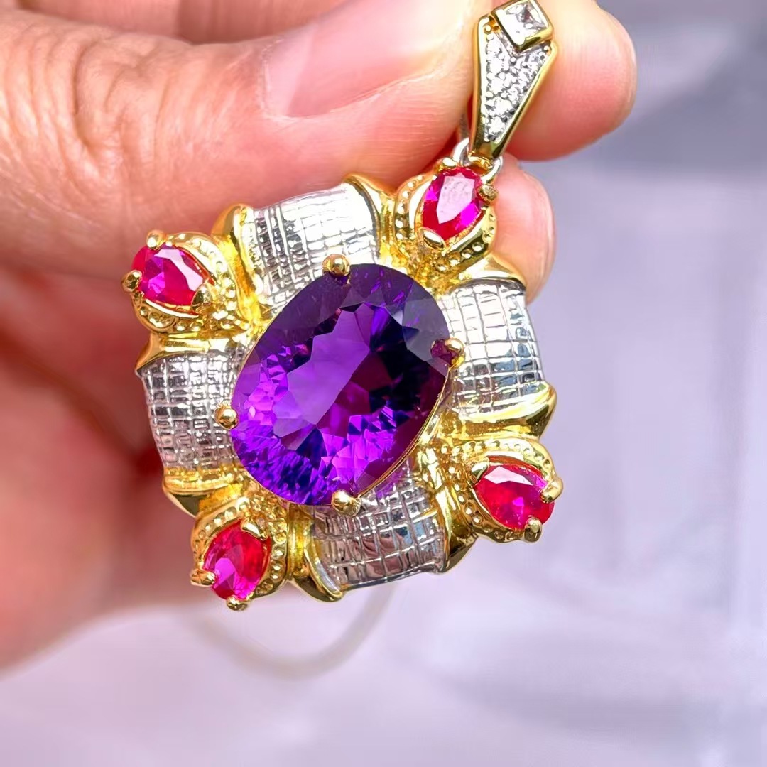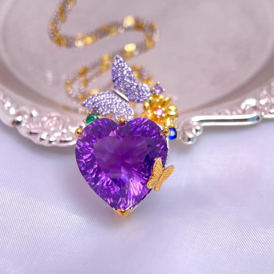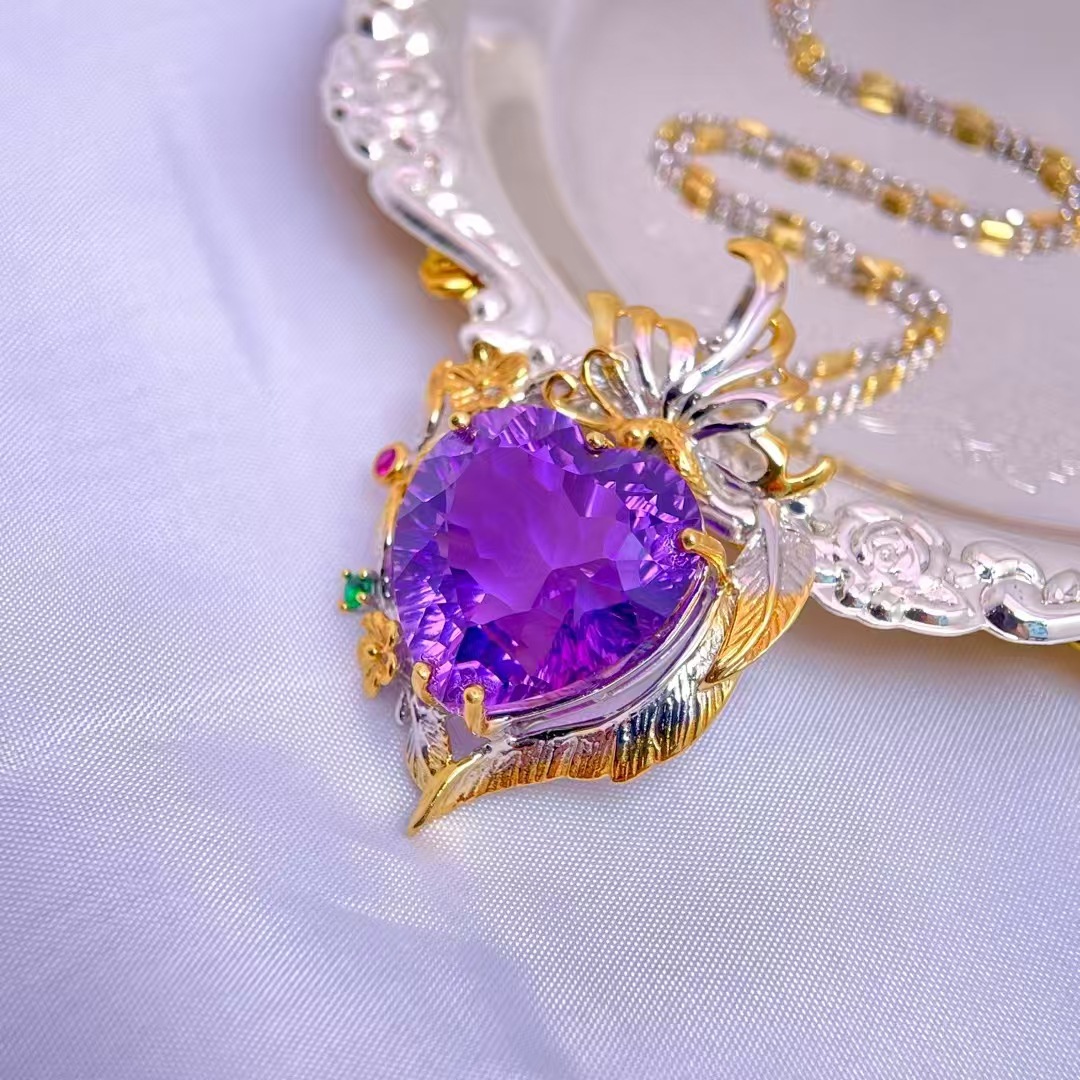 イタリア ブラジル 天然アメジスト ペンダント ダブルカラー クラフト バロック シルバー925 レディース