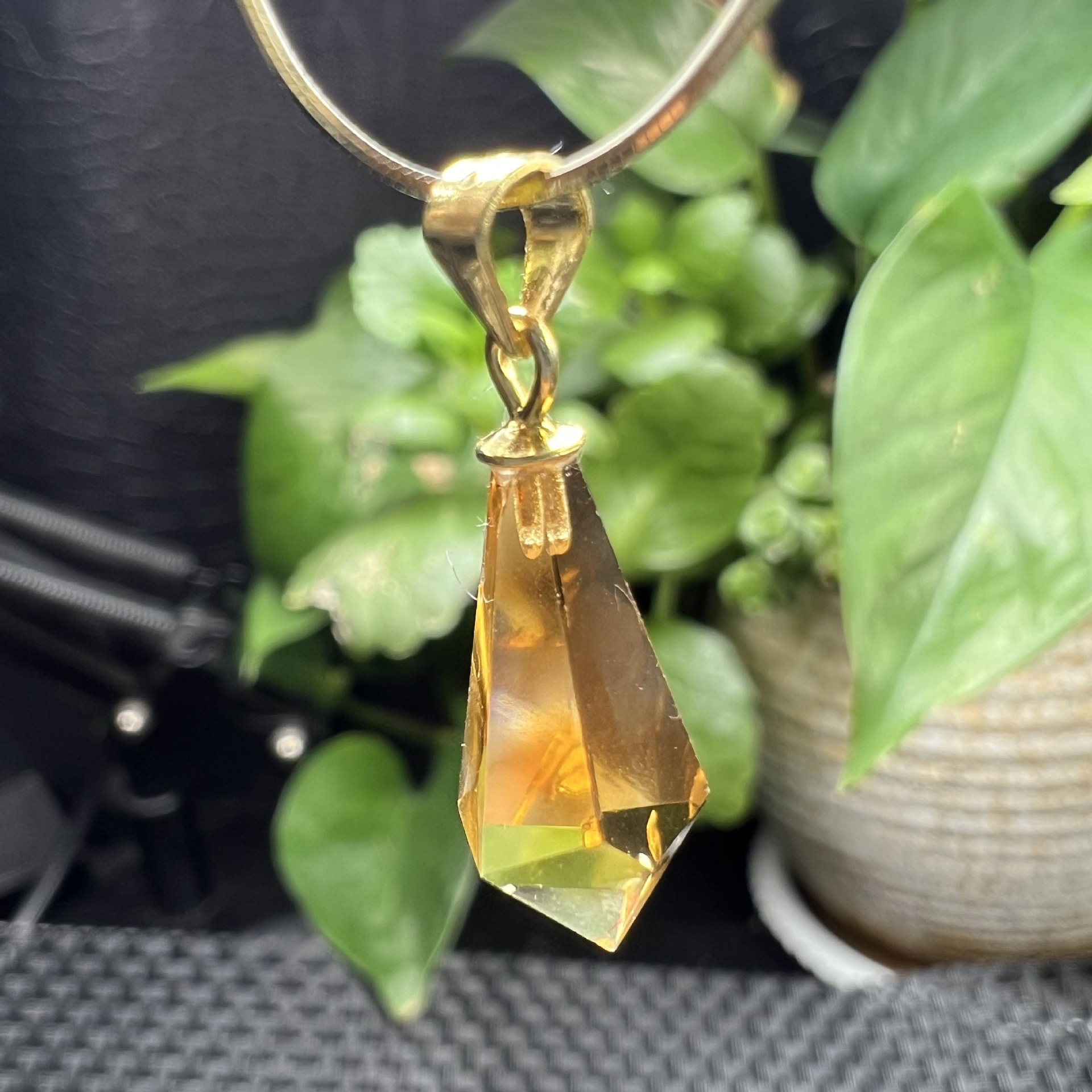 5Aグレード天然シトリン双頭振り子ペンダント12面フルクリーンボディエネルギーコラムペンダントお土産鑑定書付き
