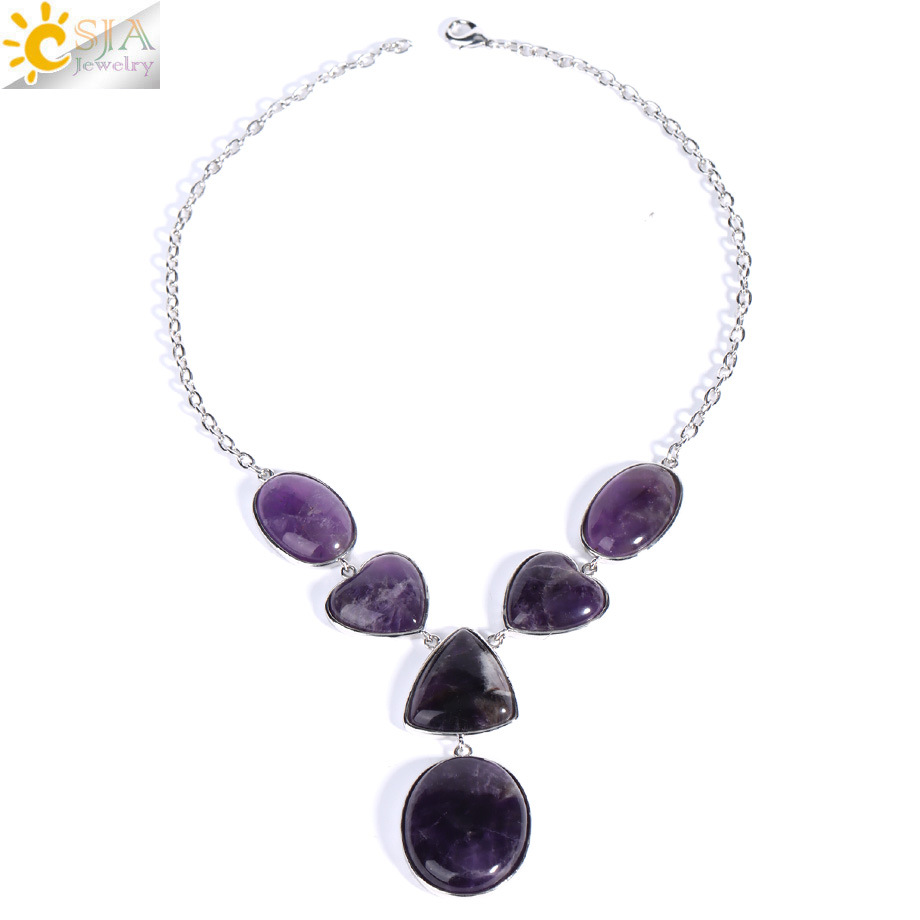 ヨーロッパとアメリカのクロスボーダージュエリー卸売パーソナライズされた誇張されたスタイルの天然水晶石ハート型三角形ペンダントネックレス
