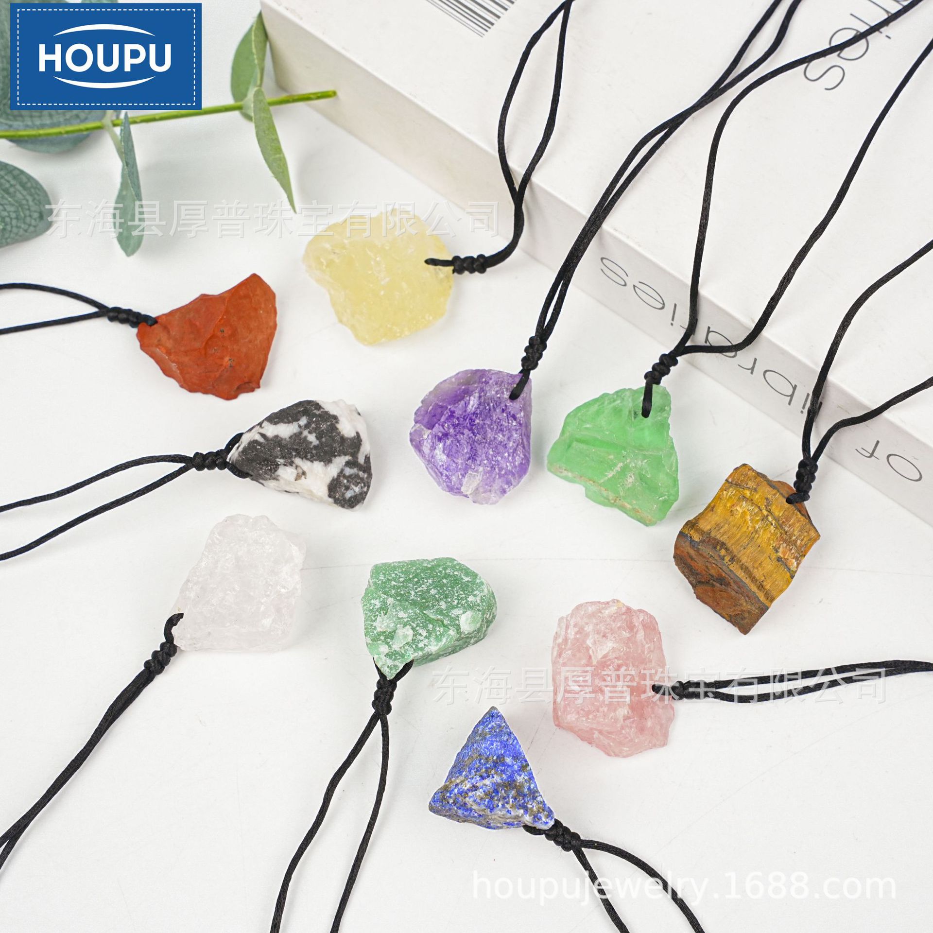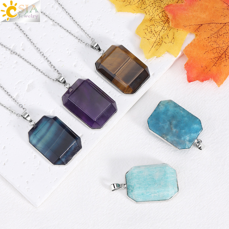 国境を越えた貿易クリスタルジュエリー卸売シンプルでファッショナブルな天然石ノーブランド長方形エッジペンダントネックレス