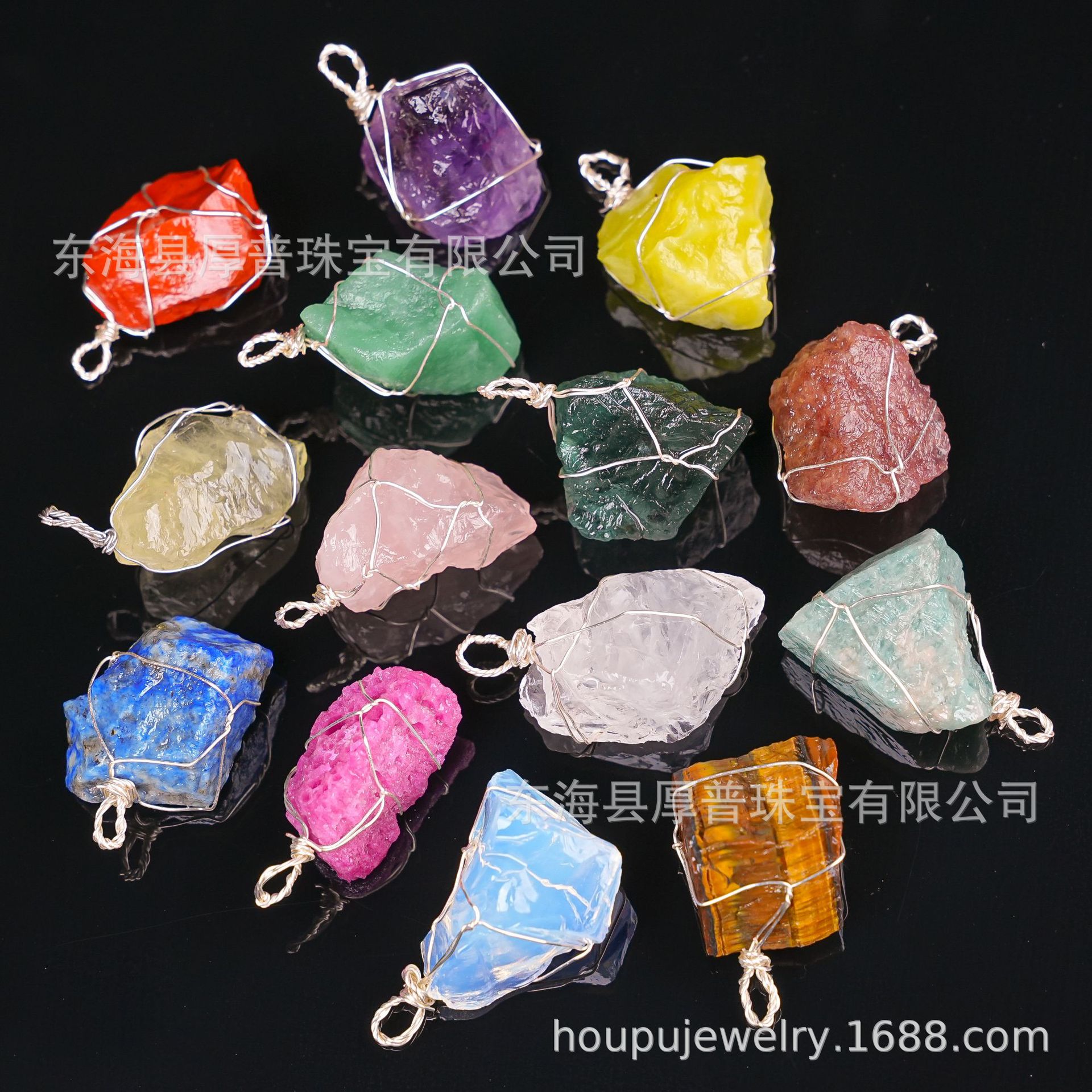 クロスボーダー天然水晶原石銀糸編み網兜ペンダント手作り巻線金属ネックレスアクセサリー卸売りファッション