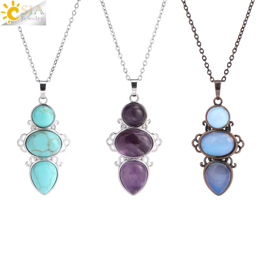 ヨーロッパとアメリカのレトロなスタイルのラウンド形の水滴型天然水晶石ペンダントネックレス卸売国境を越えた外国貿易供給