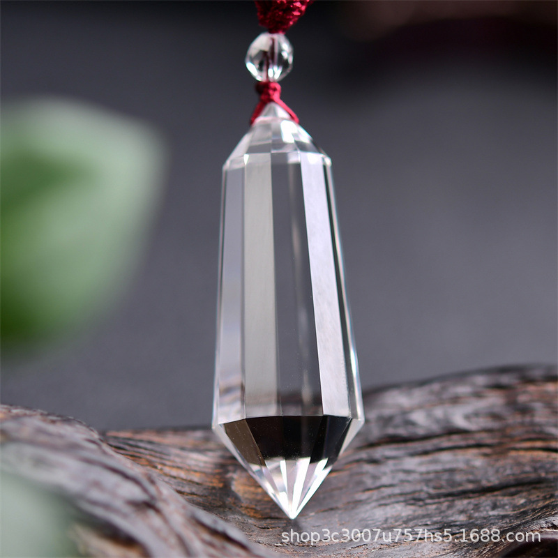 5Aグレードのナチュラルホワイトクリスタルダブルチップペンダント、12面の完全浄化エネルギー柱ペンダント、お土産ギフト鑑定書付き