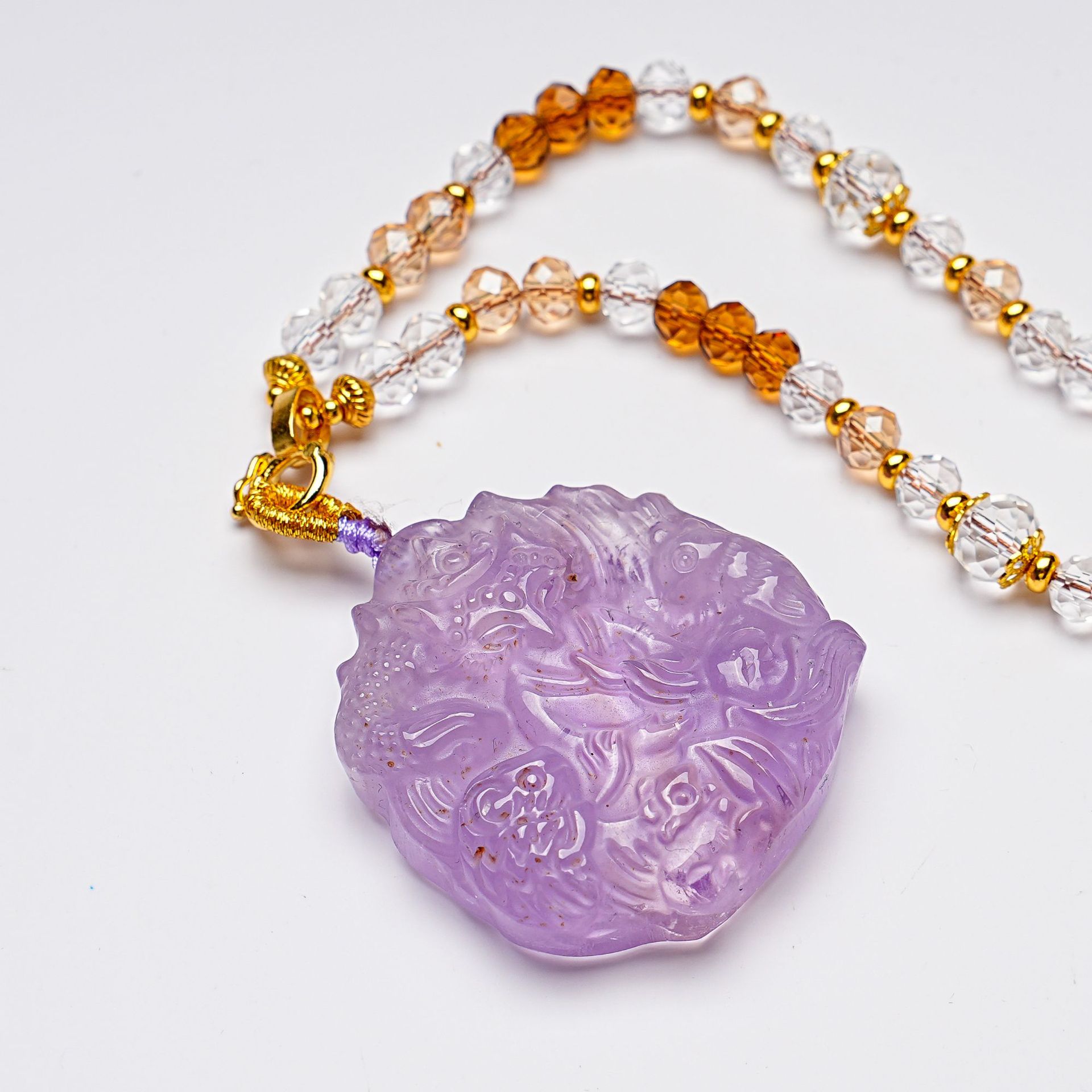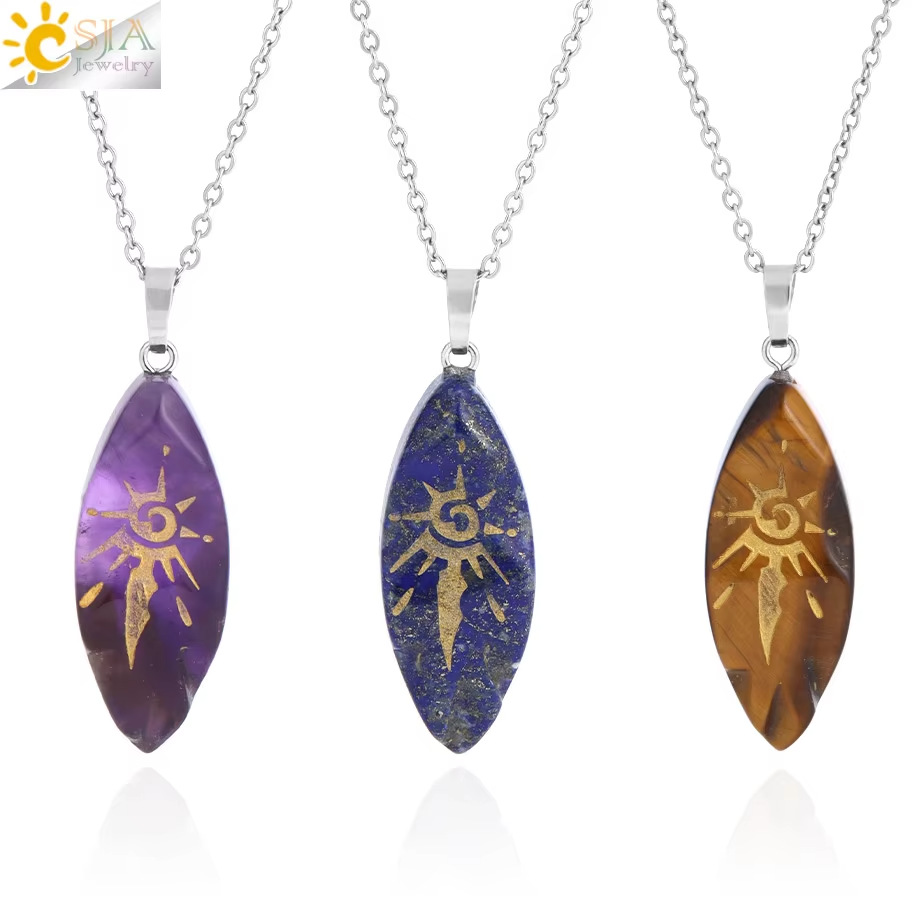 新しい天然水晶石太陽神シンボルタイガーアイアメジストペンダントネックレス外国貿易電子商取引供給卸売