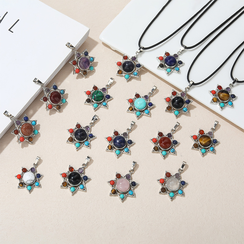 七石 6 角星ペンダント天然水晶ペンダントヨーロッパとアメリカのクロスボーダーサンフラワーネックレスペンダント