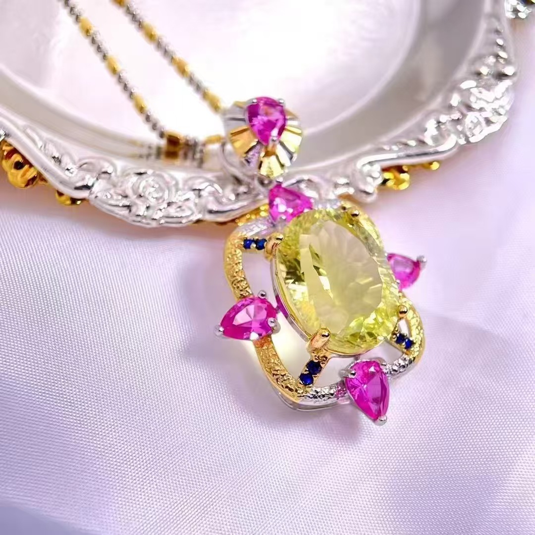 イタリア ブラジル産 天然レモンシトリン ペンダント ダブルカラー クラフト スイート シルバー925 レディース