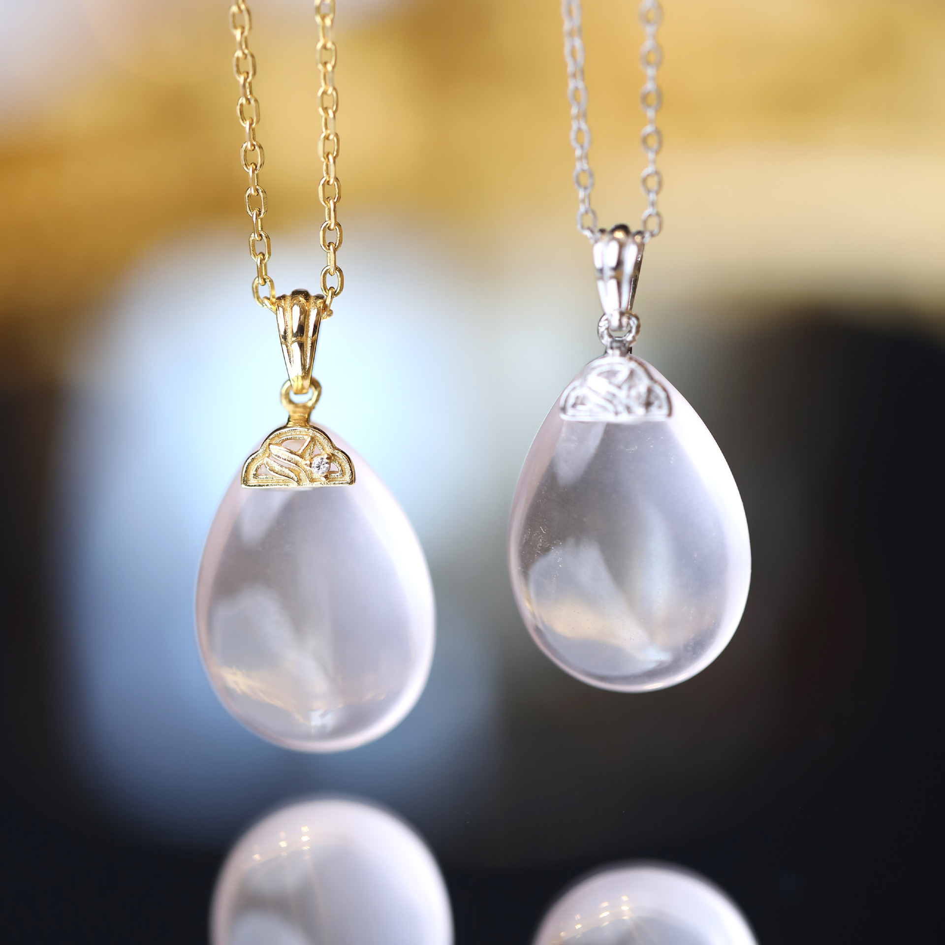 S925 シルバー ゴールドメッキ 天然ピンククリスタル 水滴型 リーフバックル シンプル デイリー 万能 レディース ペンダント