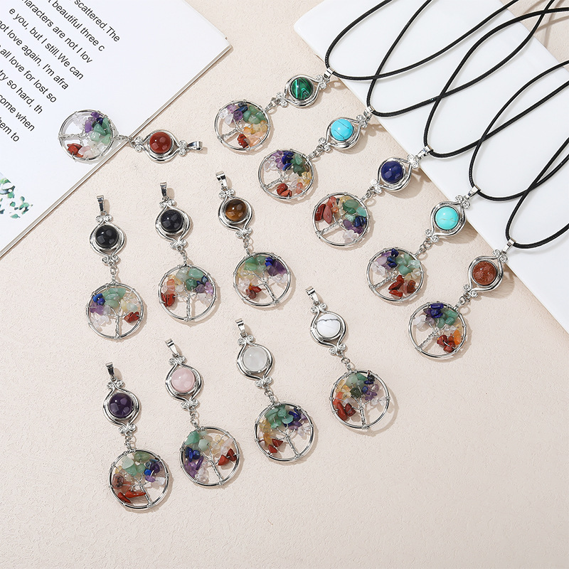セブンストーン ライフツリー ドリームキャッチャー ラウンドビーズ チャーム 砂利ペンダント 天然石 クリスタル ペンダント ネックレス ペンダント ペンダント