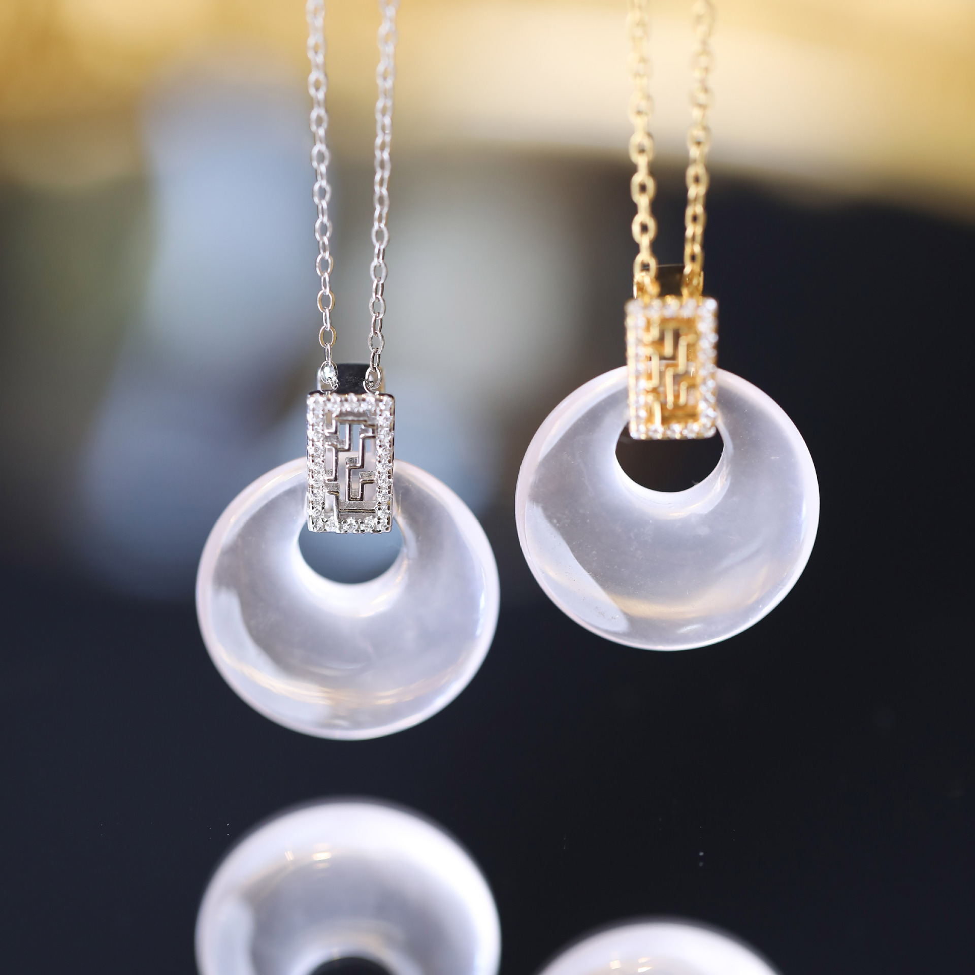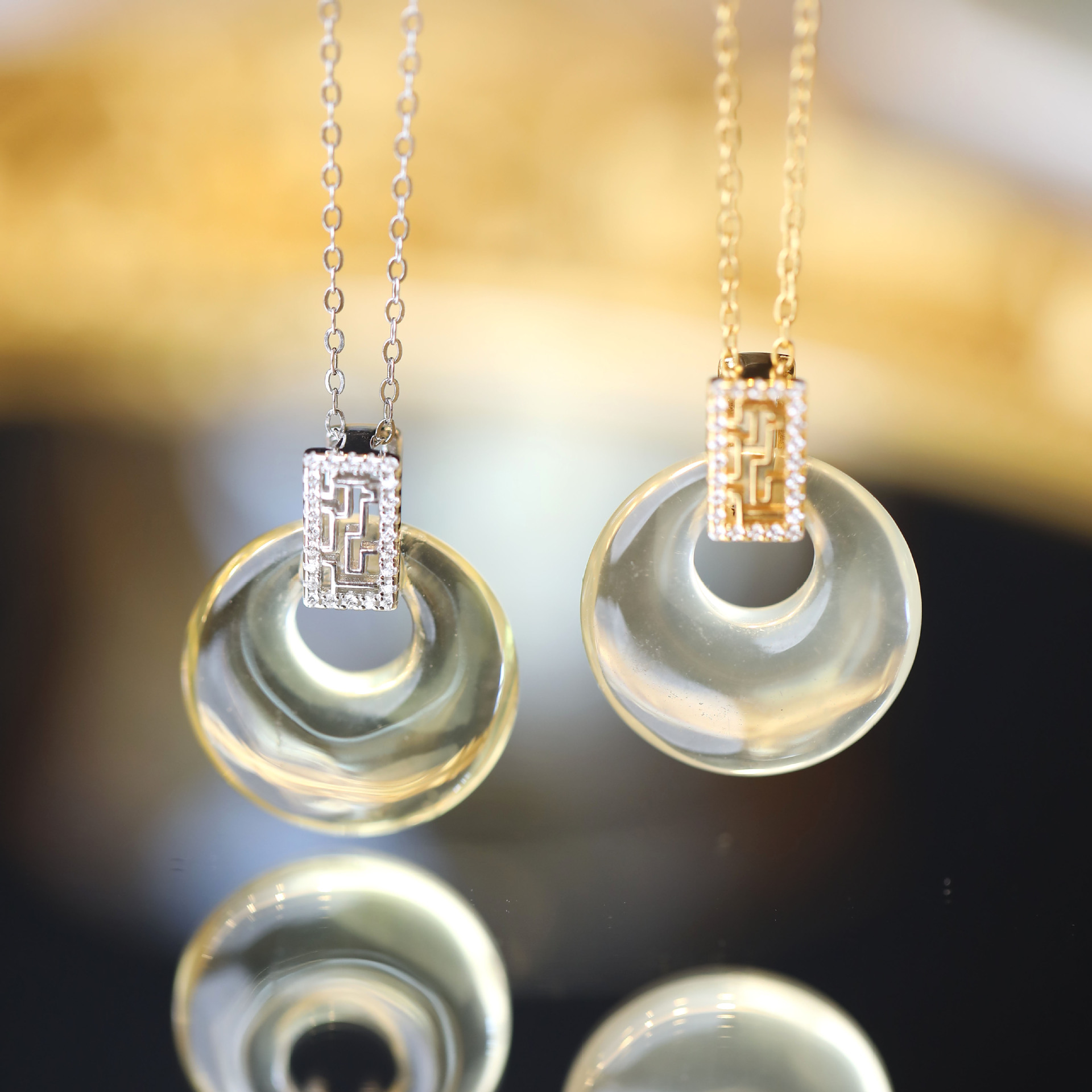 S925銀金メッキモザイク天然粉水晶王女ボタン造形回紋復古中国式シンプル日常女性ペンダント