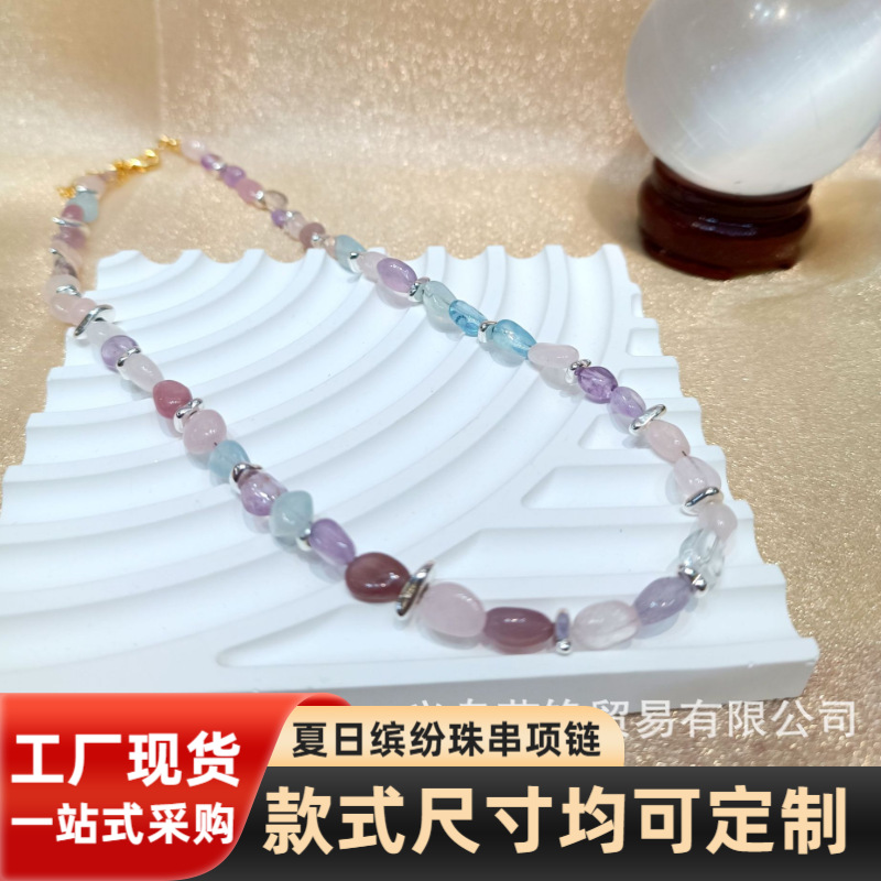 天然宝石サマービーズネックレスアクアマリンアメジストローズクォーツミックスアンドマッチニッチファッションモデル越境電子商取引ホット