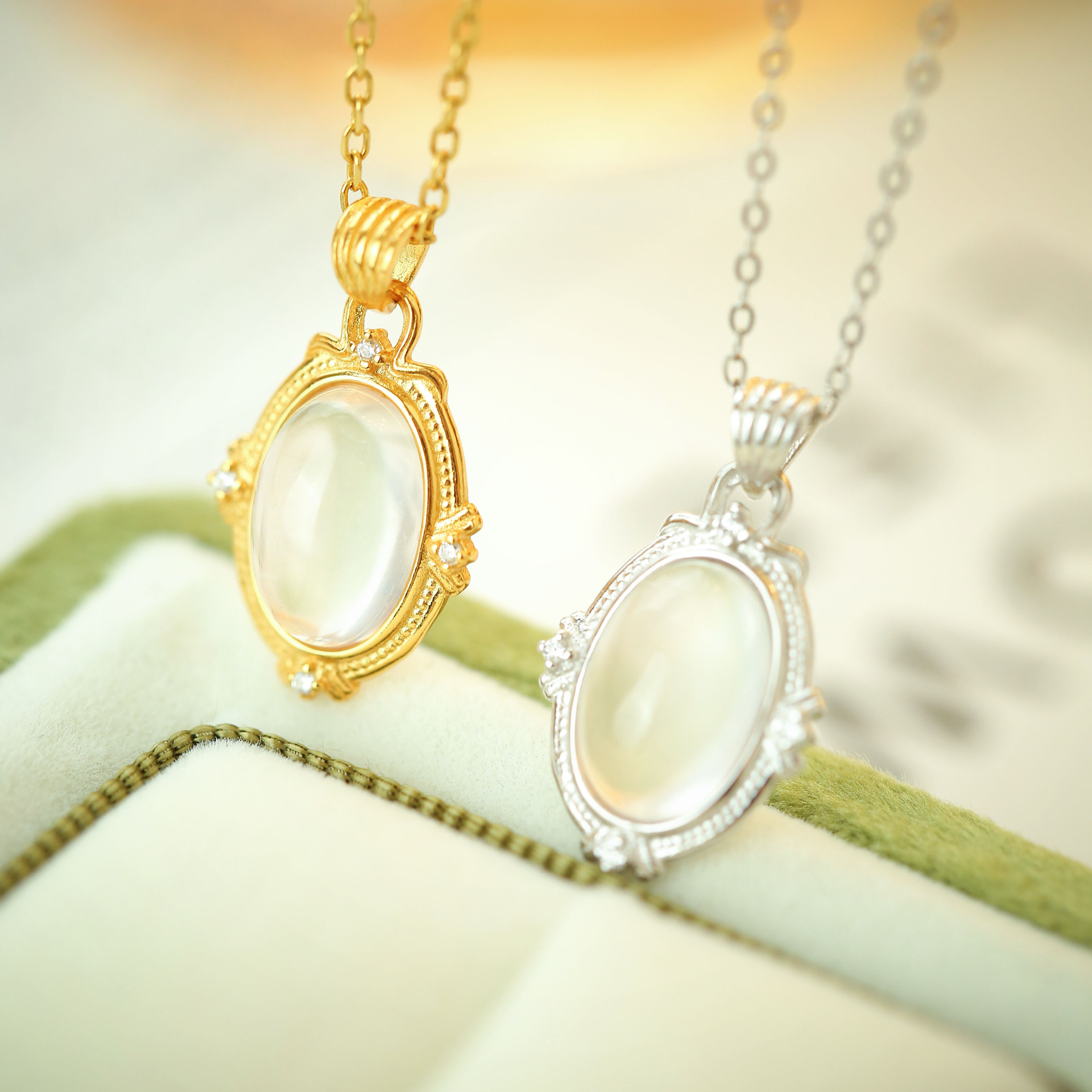 S925銀金メッキモザイク天然粉水晶卵面バロック風レトロ文芸范甘宮廷ペンダント