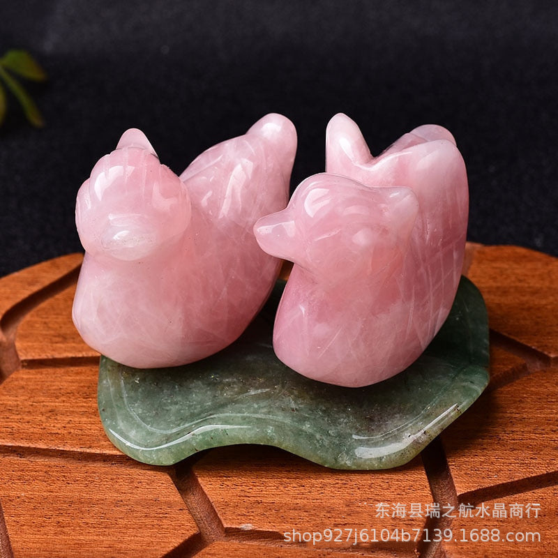 粉晶鴨半宝石水晶彫刻件小動物クロスボーダー工芸アクセサリー置物結婚祝いプレゼント縁結び