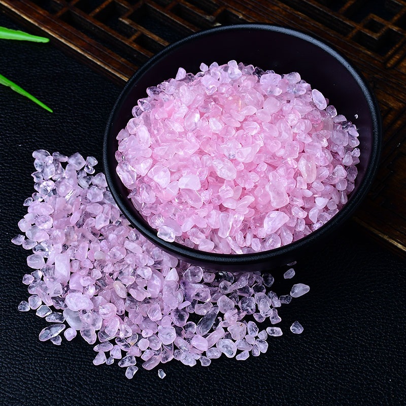 天然粉水晶砂利小粒置物金魚鉢造景水晶枕供仏消磁石