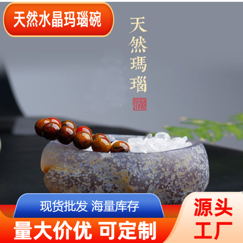 天然水晶瑪瑙碗聚宝盆置物玉髄瑪瑙原石消磁碗灰皿工芸品卸売り