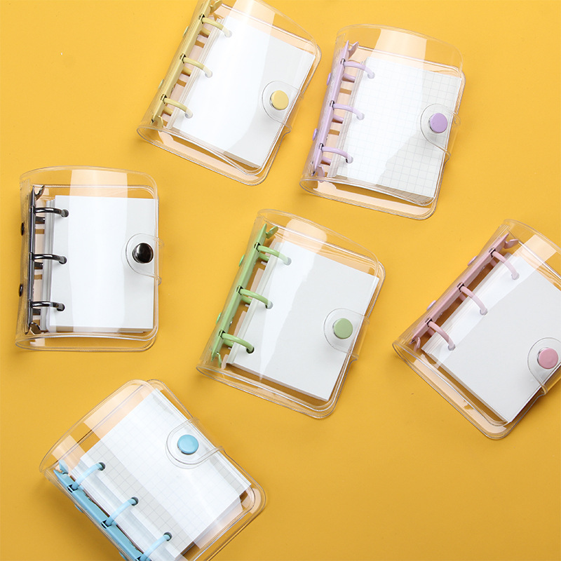 韓国文房具3穴バインダーミニPVC透明ケース携帯バインダーコイル手帳卸売り
