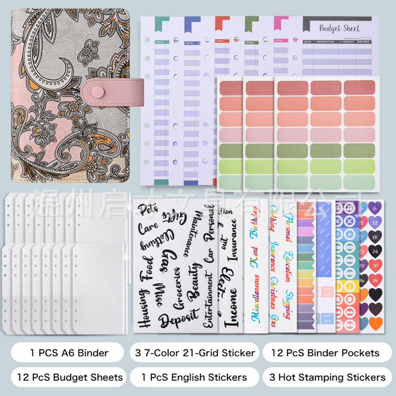 バラ布芸現金貯金バインダー本大容量でお金を入れることができる収納クリップ大容量a6資産管理貯金本