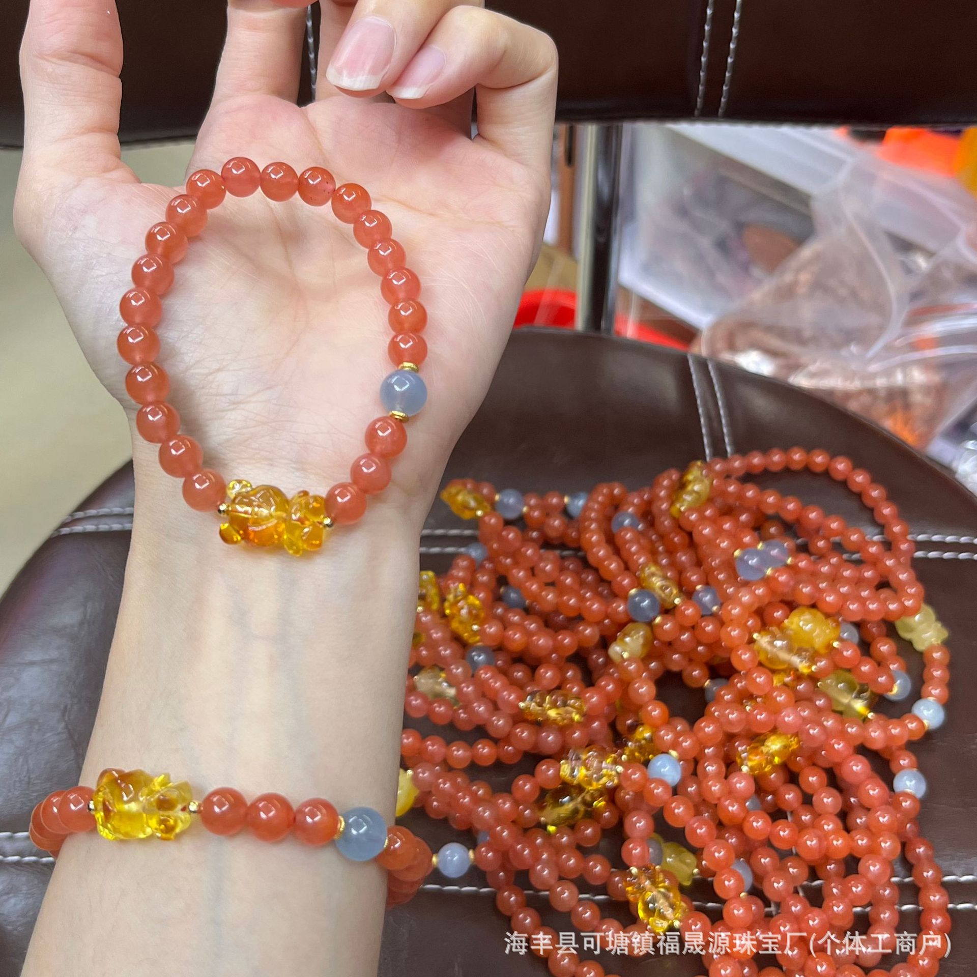 天然紅瑪瑙熊塩源桃DIYデザイン女性用天然原石瑪瑙手串帝王ブレスレット