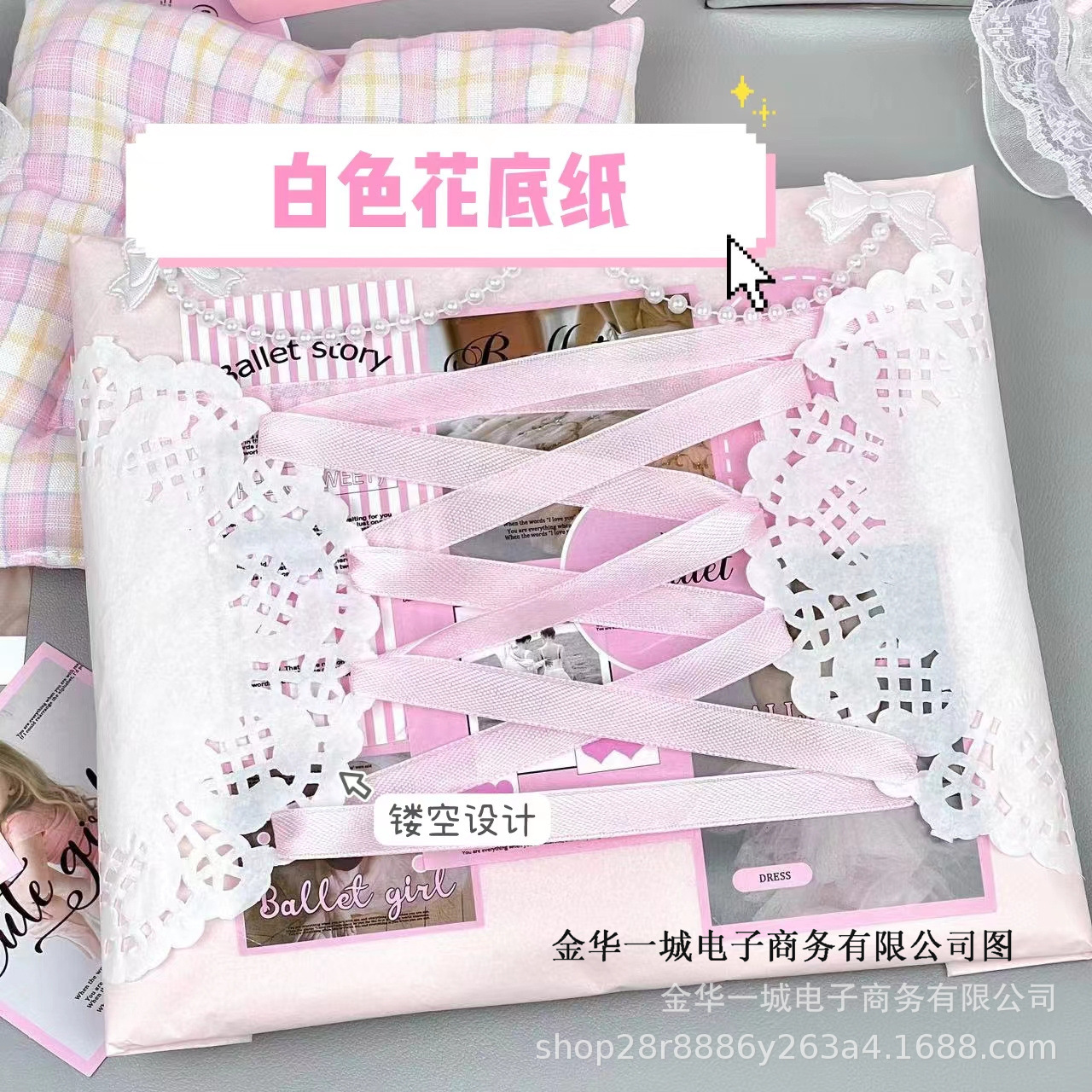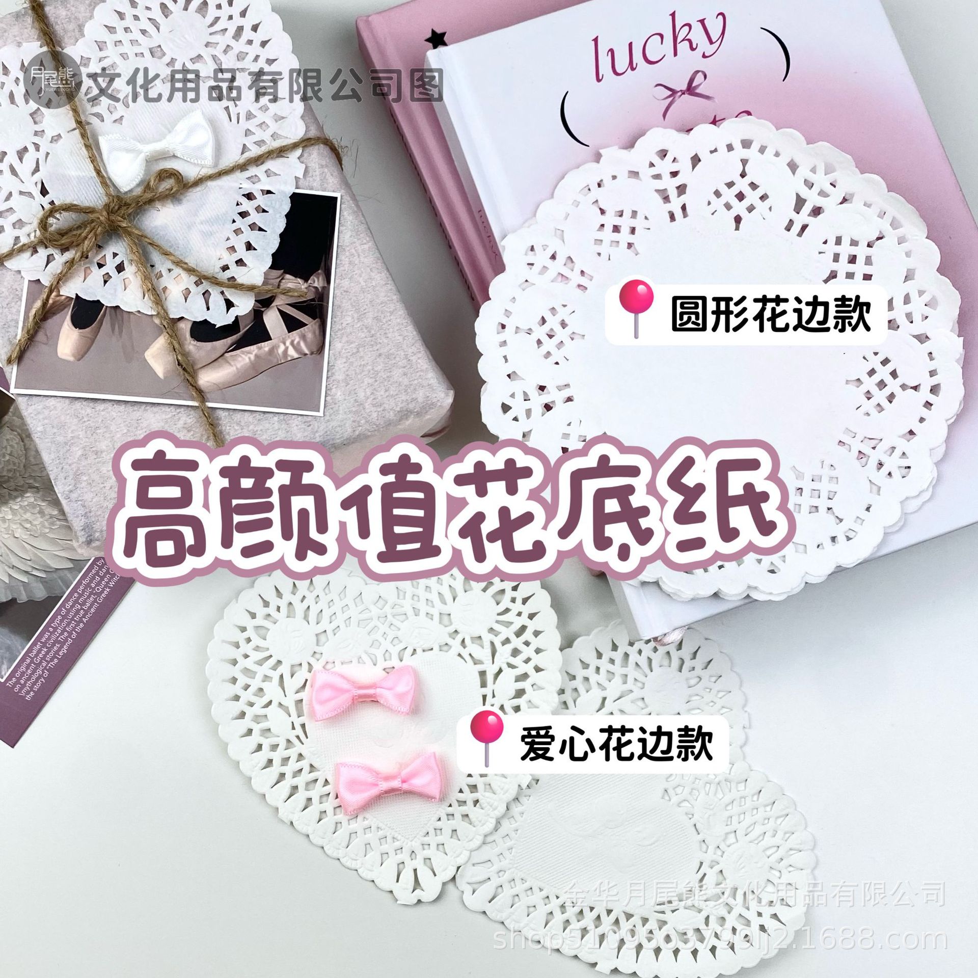バレエ風透かし彫りレース白色円形素材紙フランス風包装装飾タイル手帳包装紙円形