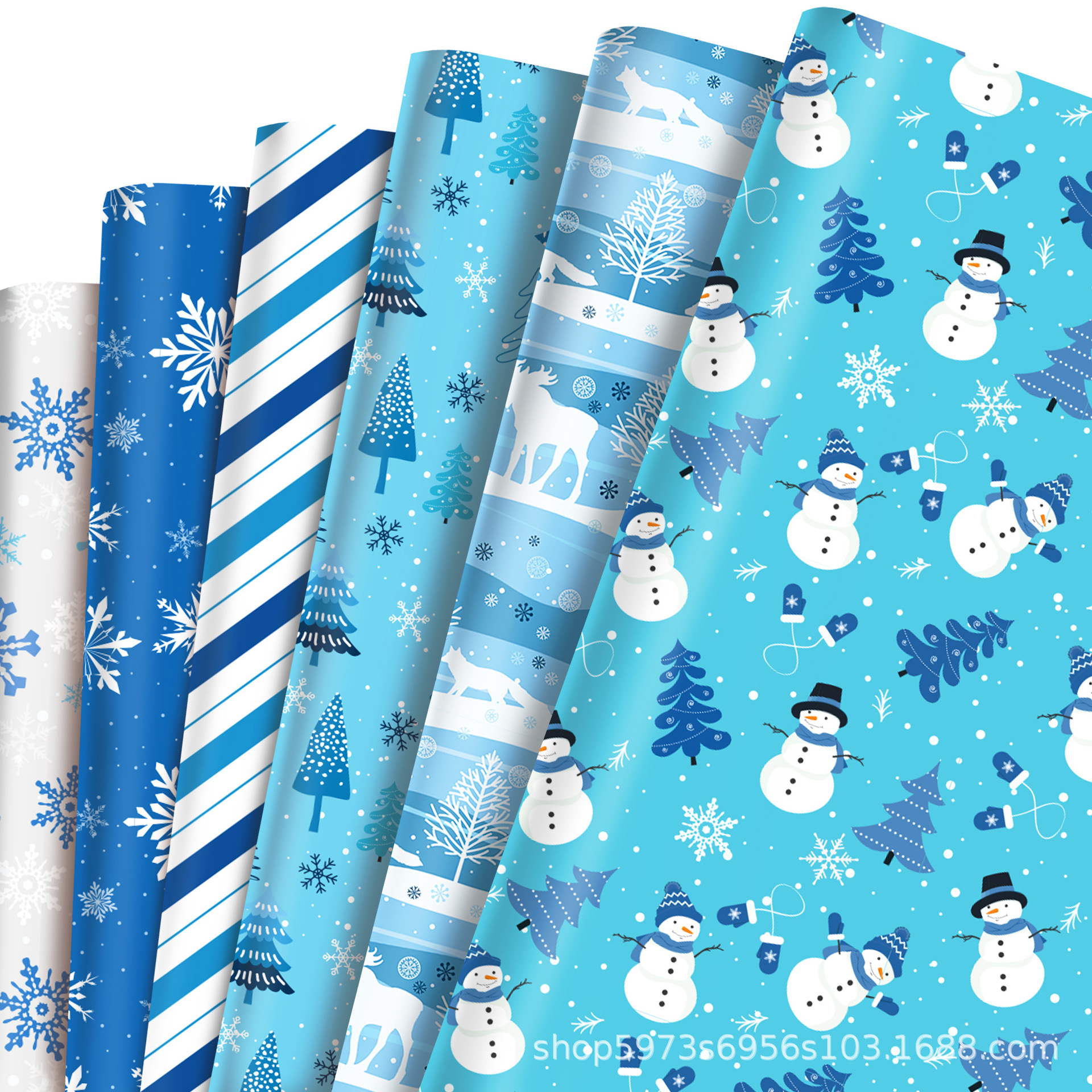 WZ067 スノーフレーク雪だるまクリスマスブルーギフト装飾紙パーティーギフトギフトボックス装飾外装紙