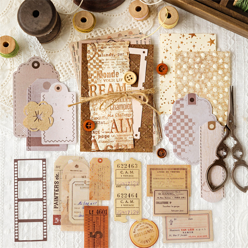 レトロハンドブック素材パッケージフローティングペイント章マルチマテリアル文学非粘着レリーフ中空コラージュハンドブック装飾