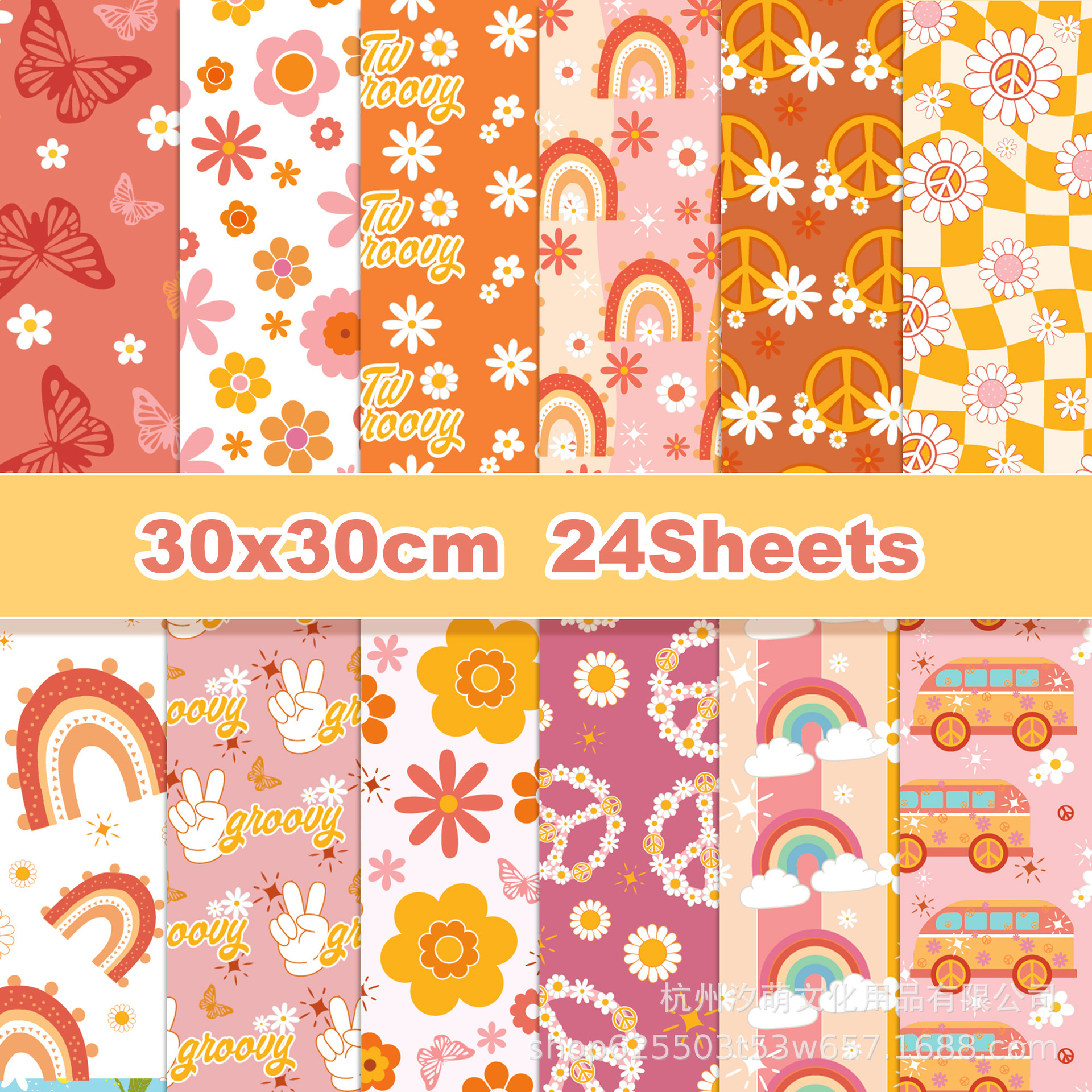 WW008クロスボーダーヒッピースクールバスレインボー手帳素材紙クリップ本カード作成背景紙