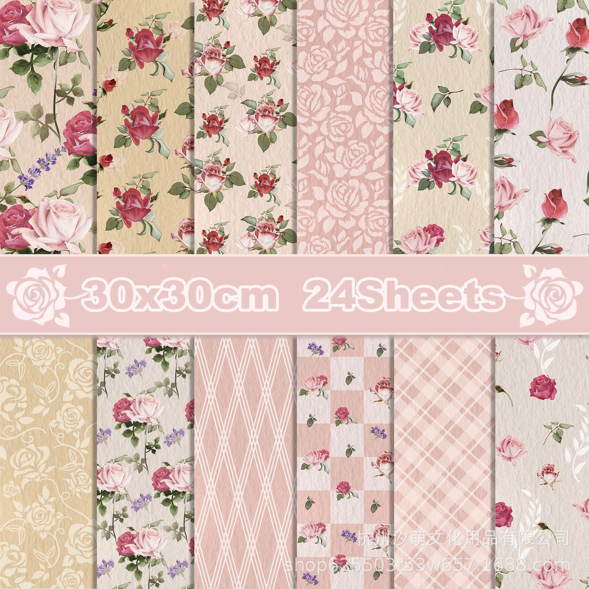 Ww006越境レトロ水彩赤バラ手帳素材紙クリップカード作成背景紙