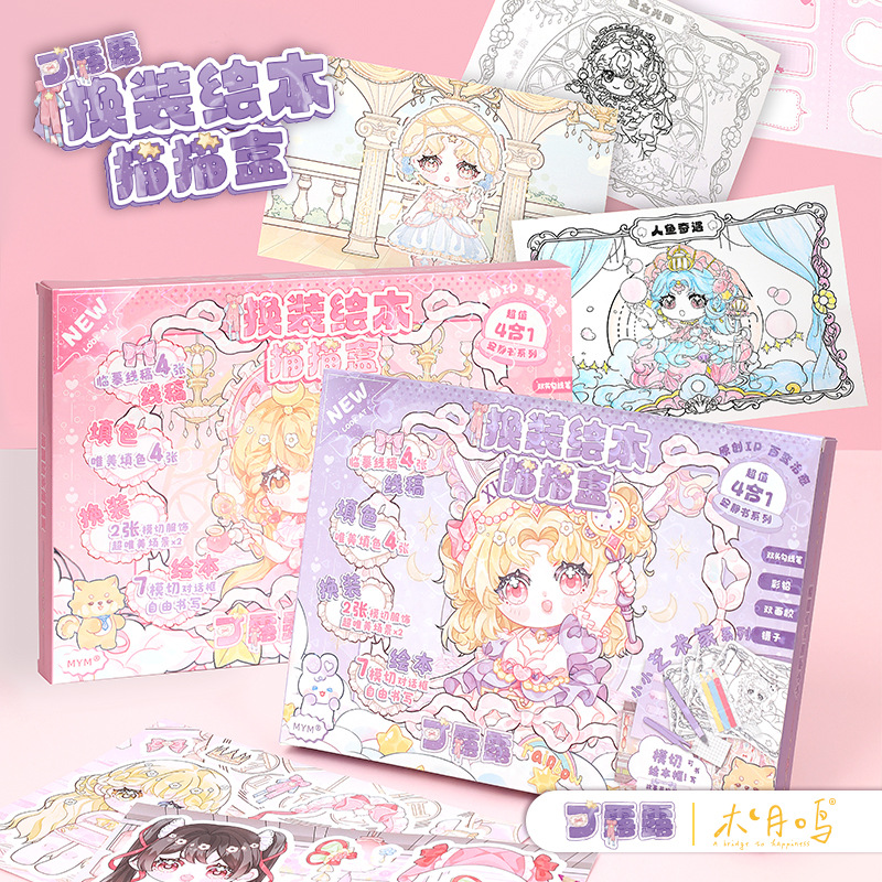 木月鳴可露露着せ替え絵本なぞり箱4合1diy静かな本幼児益智塗り絵本