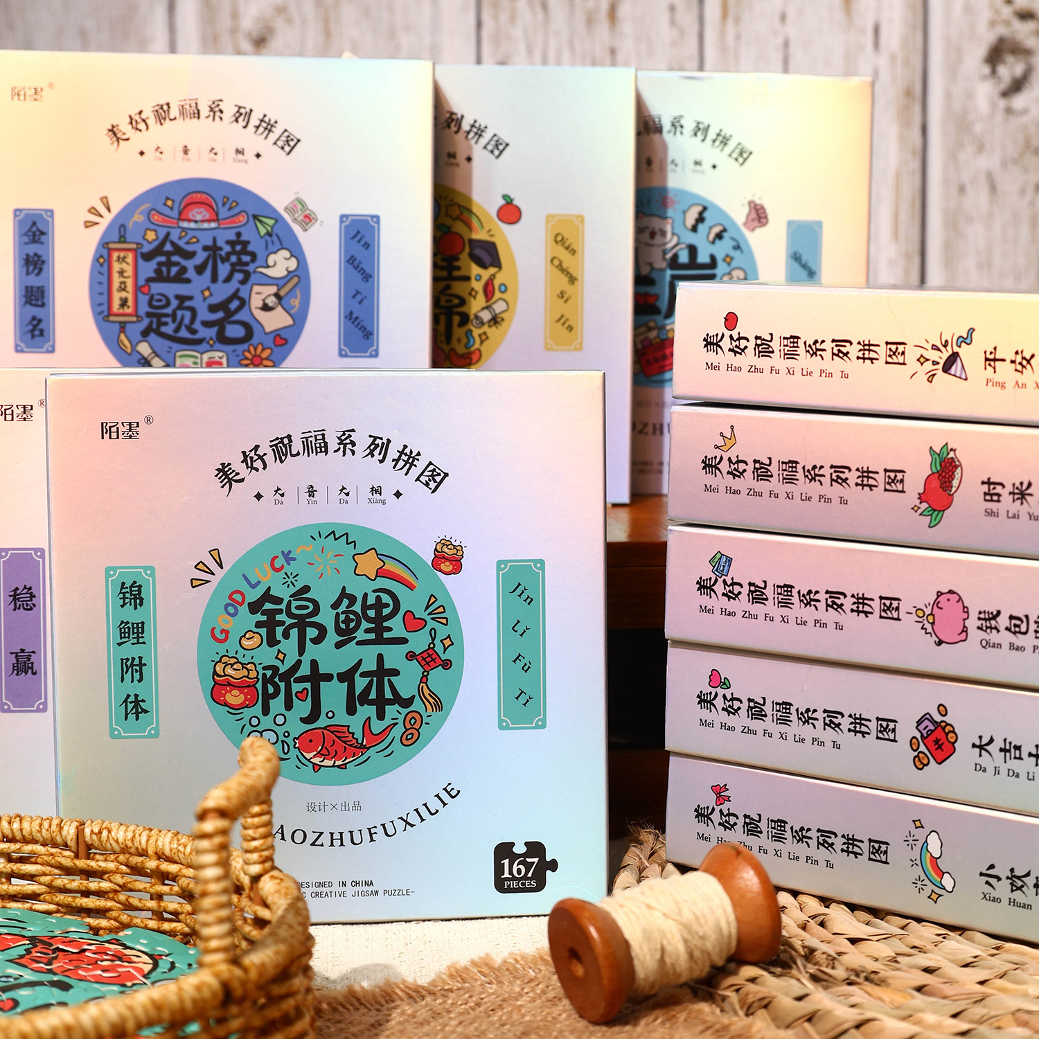 墨円形パズルギフトボックス美しい祝福シリーズ中国風文字誕生日プレゼントデスクトップ装飾置物
