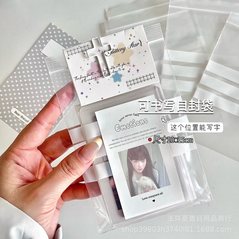 Ins博主同タイプの白いストライプ包装袋はスライドバッグのカードシール素材を書くことができます。
