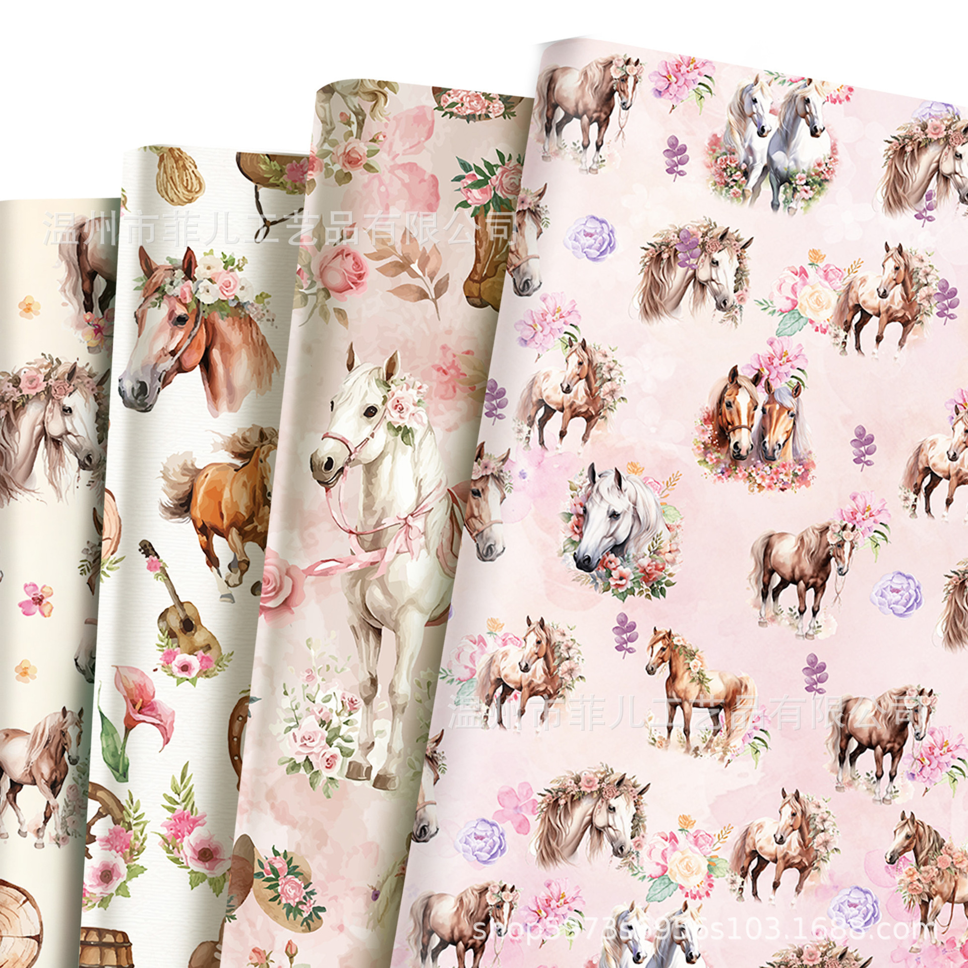 WZ154 ローズ競馬テーマギフト装飾紙ギフトボックス紙水彩ポニー装飾外装紙
