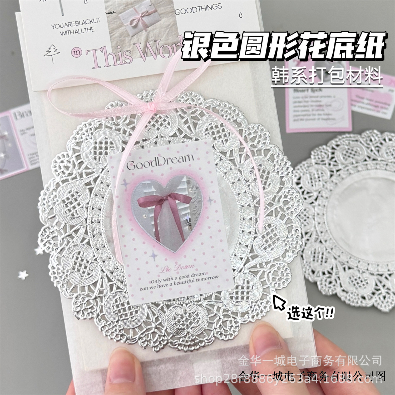 高颜値銀色円形花底紙手帳diy装飾素材平価大包材料韓系花底紙枚