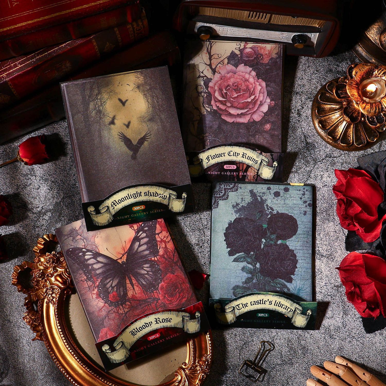 古の森の素材の紙の暗い夜の回廊のシリーズの復古の暗い手の帳簿の装飾は紙を打って紙を書きます。