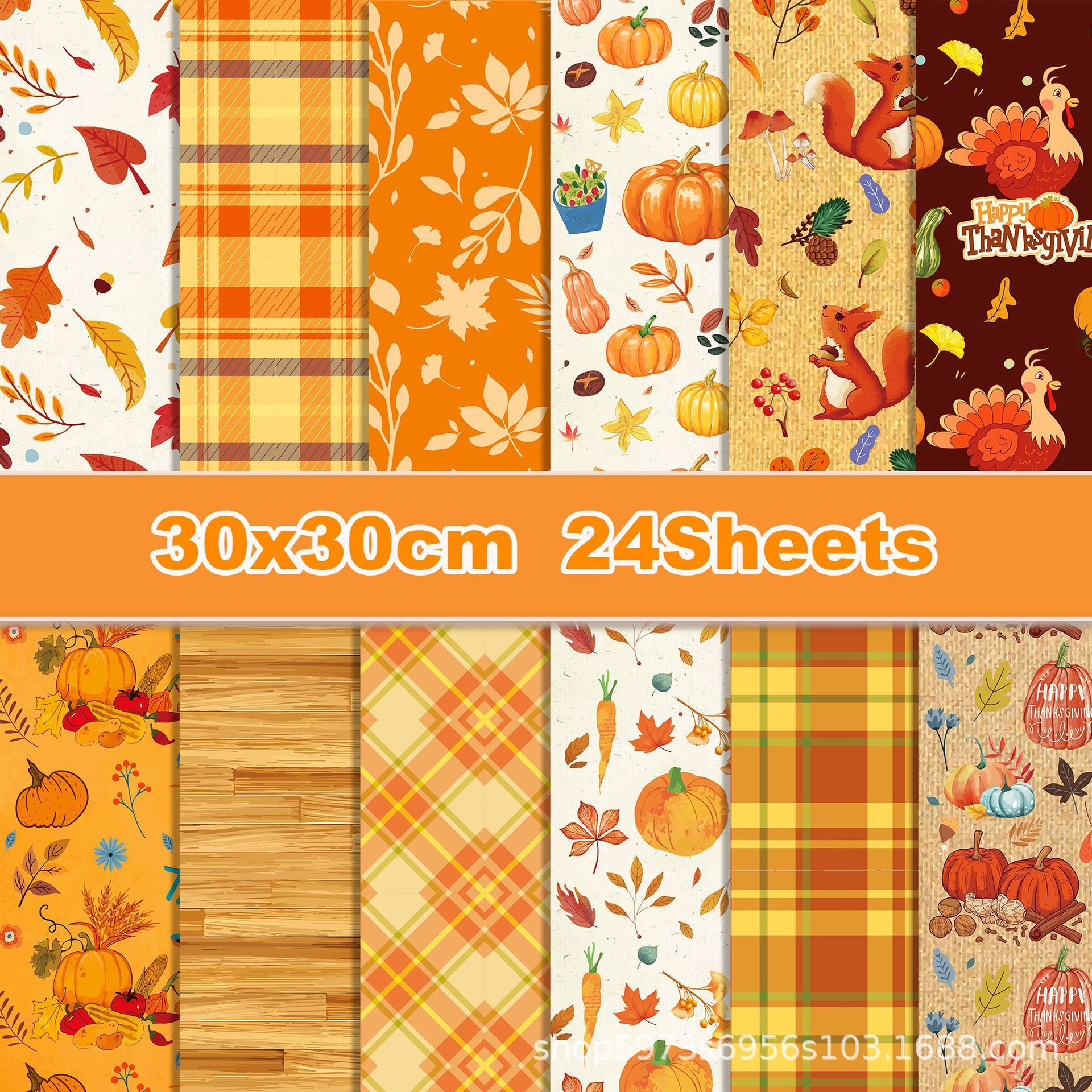Ww34レトロ感謝祭秋かぼちゃカエデ手帳素材紙クリップ本カード作成背景紙