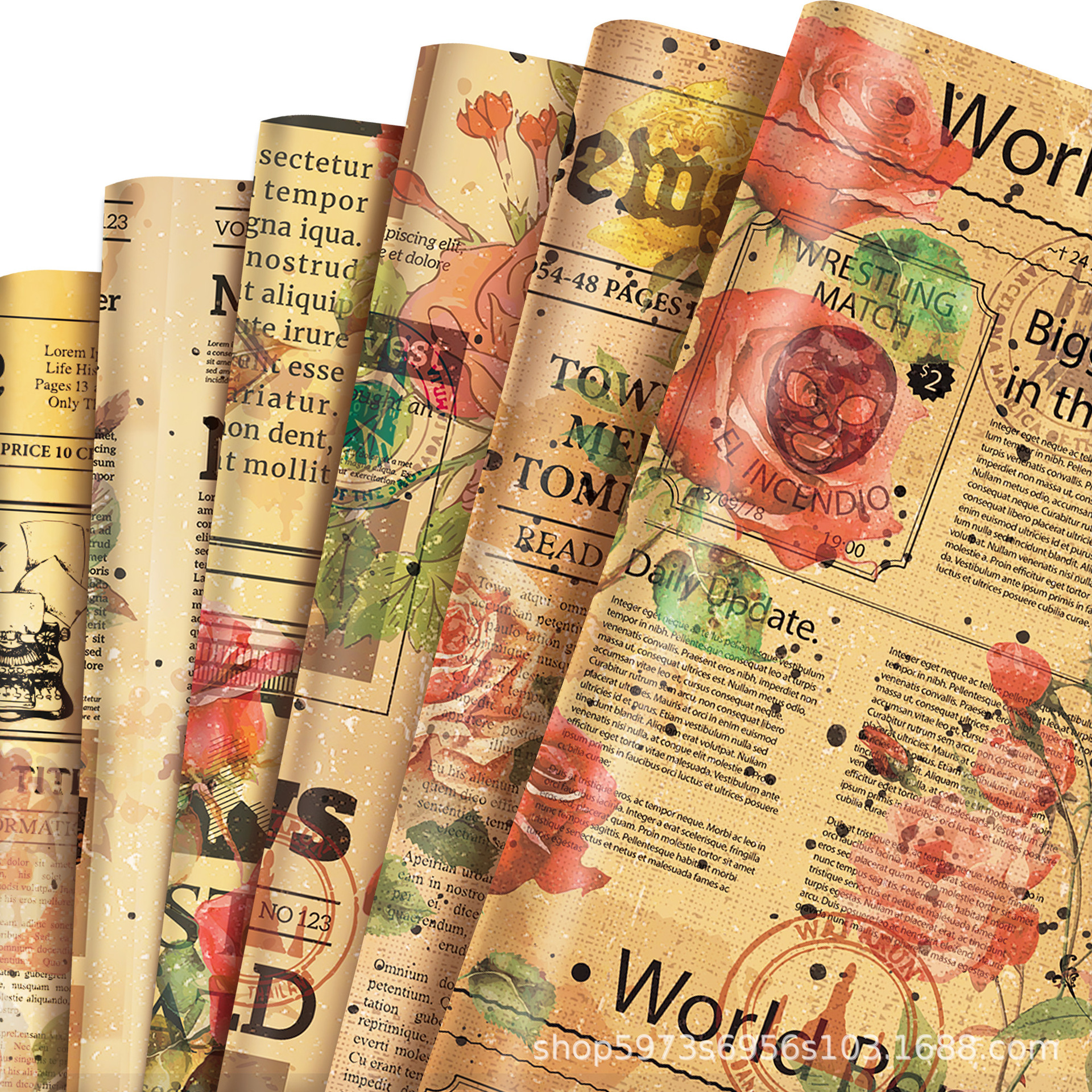 WZ043 新聞紙風レトロローズ片面ギフト装飾紙 パーティーギフトボックス装飾外装紙