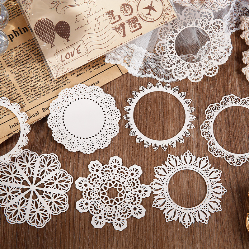 Ins風白色装飾花辺紙高顔値物ギフトバッグ装飾紙手帳素材シール卸売り